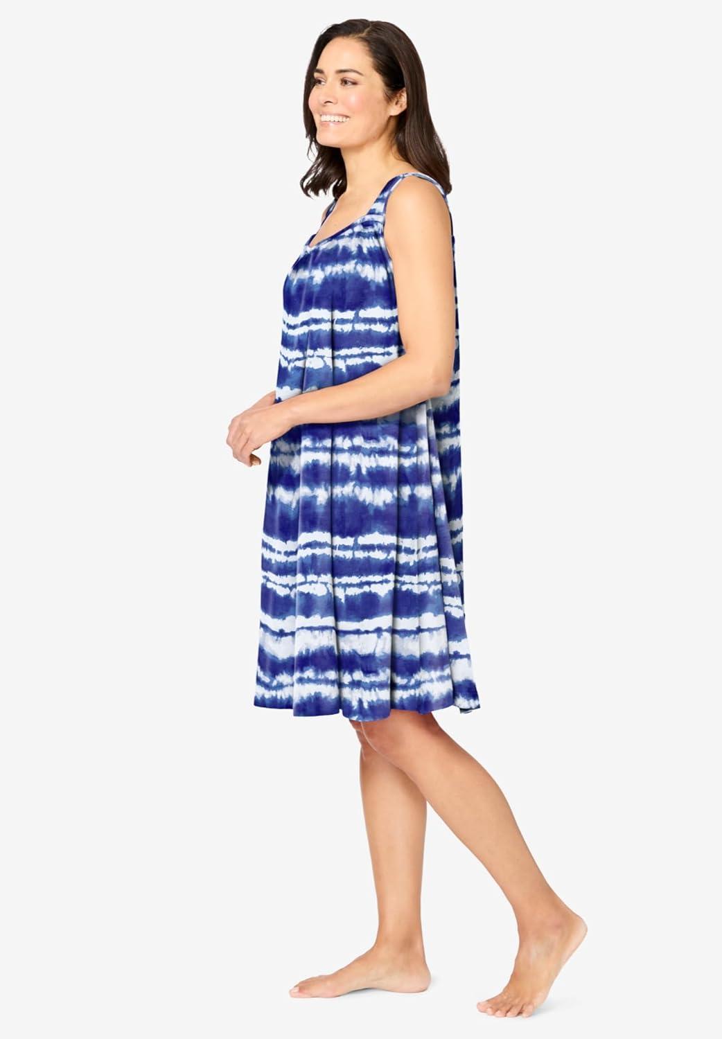 Dreams & Co. Plus Size Sleeveless Terry Lounger(Ultra Blue Tie Dye Stripe)