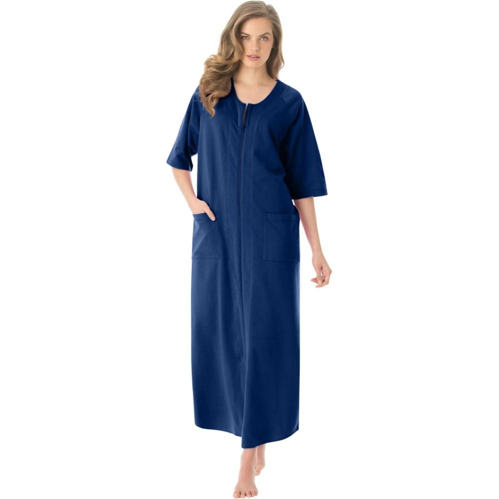 Dreams & Co. Women’s Plus Size Long French Terry Zip-Front Robe (Petite Available)(Evening Blue)