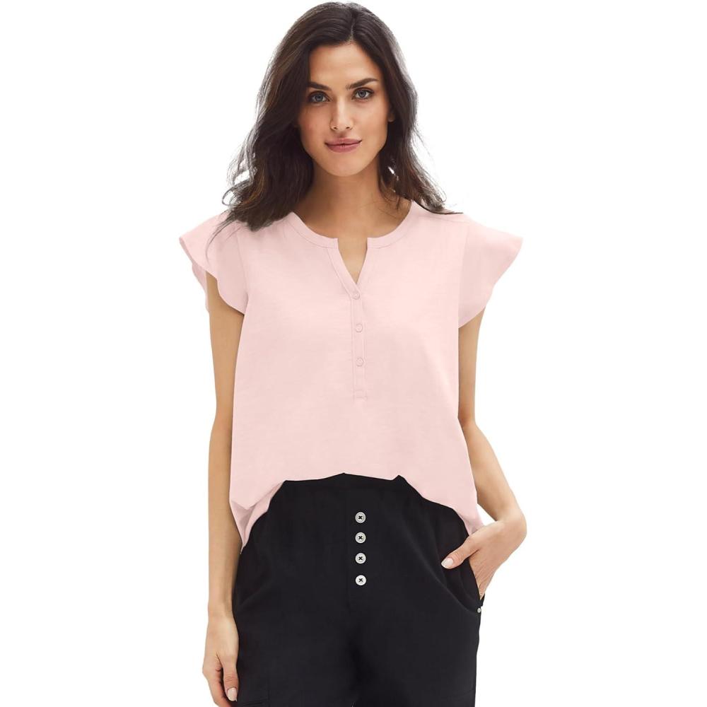 Ellos Plus Size Cap Sleeve Henley Tee(Sandy Pink)