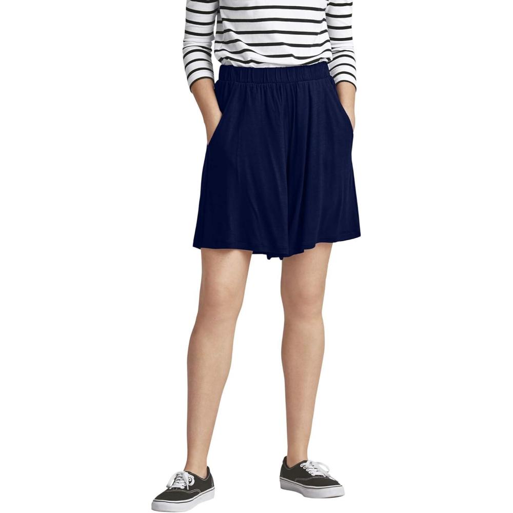 Short and chic these easy-on, easy-off shorts are a summer must-have. Wide elastic waistbandbr>2 front pocketsbr>Approx. 8″ inseam hits at mid-thighbr>Rayon Jerseybr>Machine wash cold. Imported.