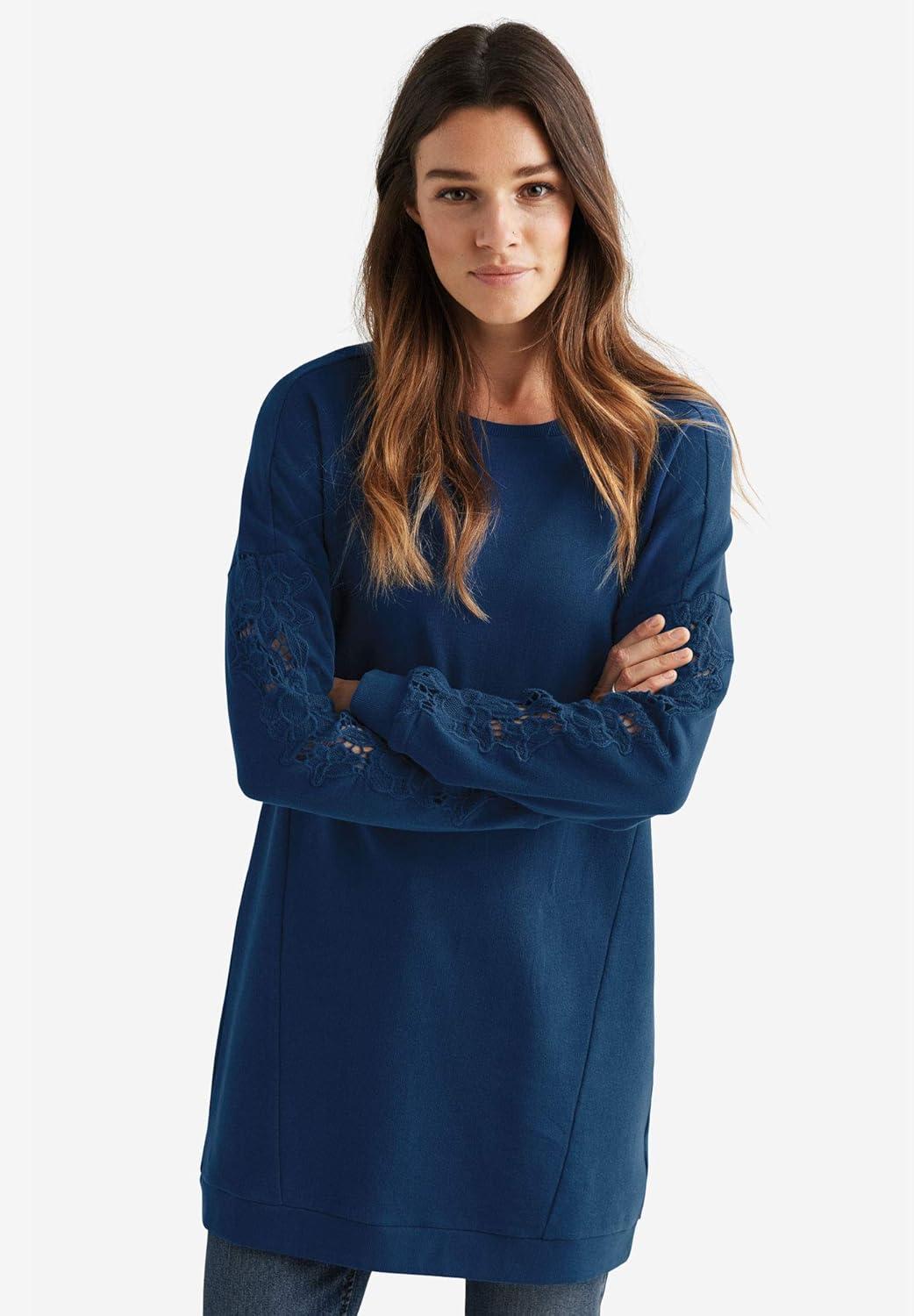 Be the first to review “ellos Plus Size French Terry Lace Trim Sweatshirt Tunic(Dusty Pine)”