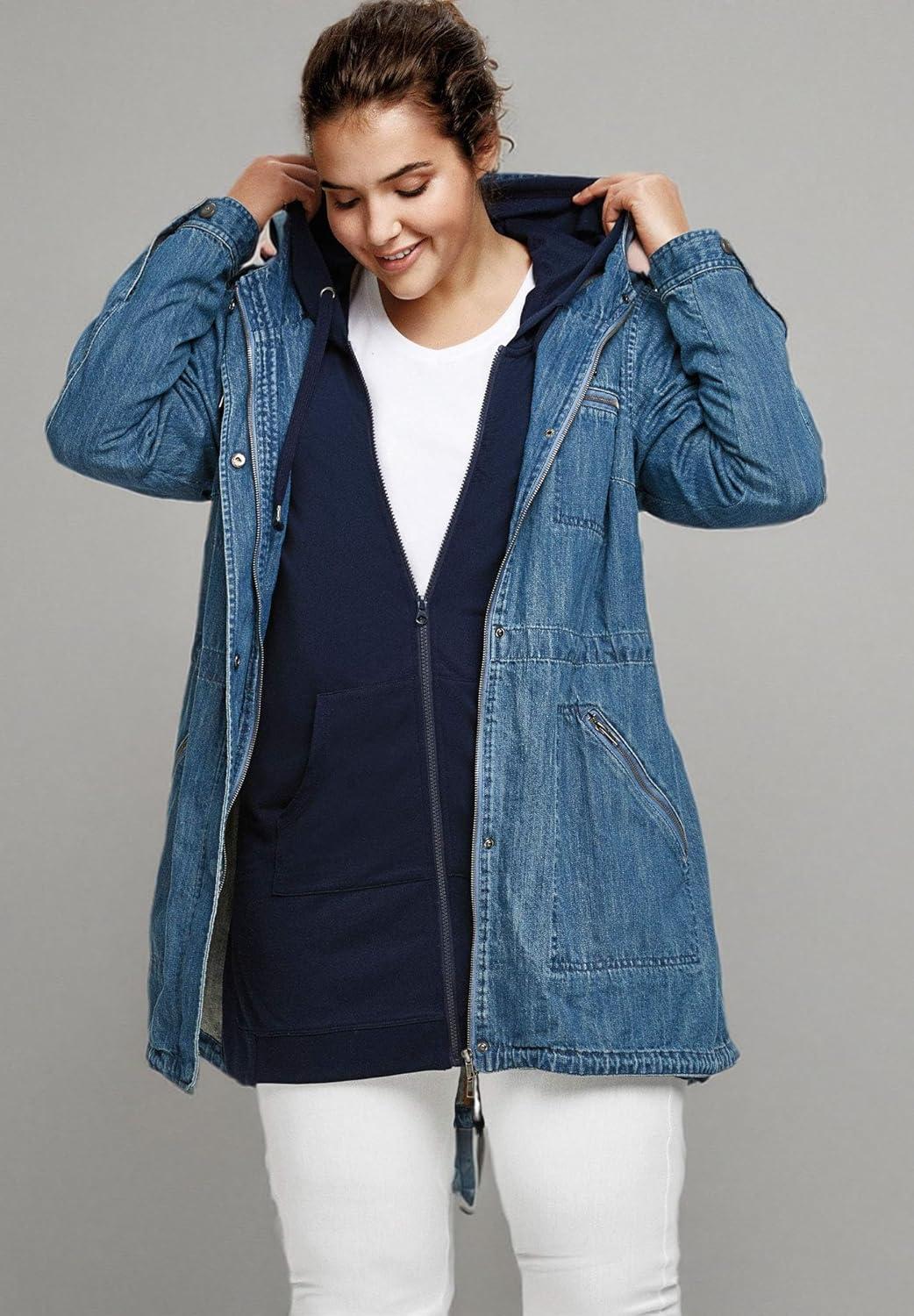 Ellos Plus Size Hooded Anorak Denim Jacket(Medium Stonewash)