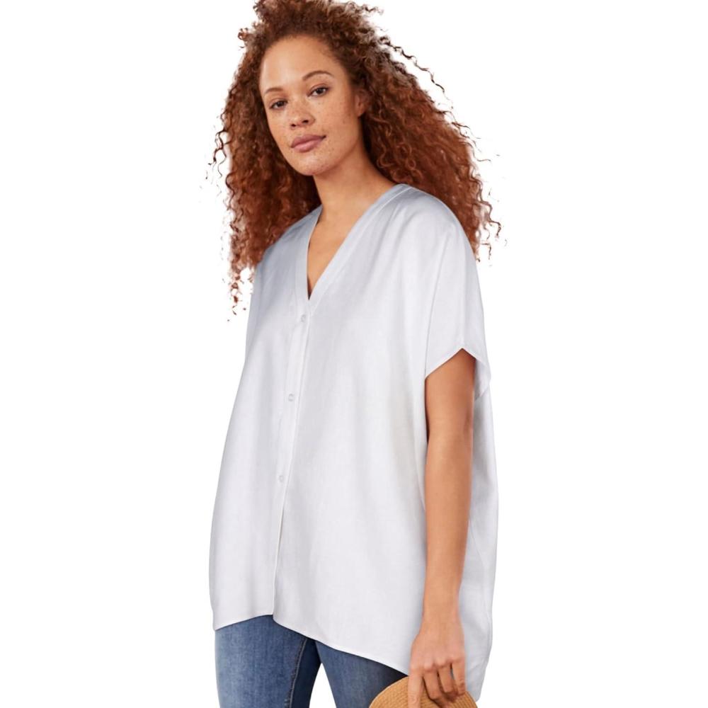 ellos Plus Size Oversized Linen-Blend Tunic(White)