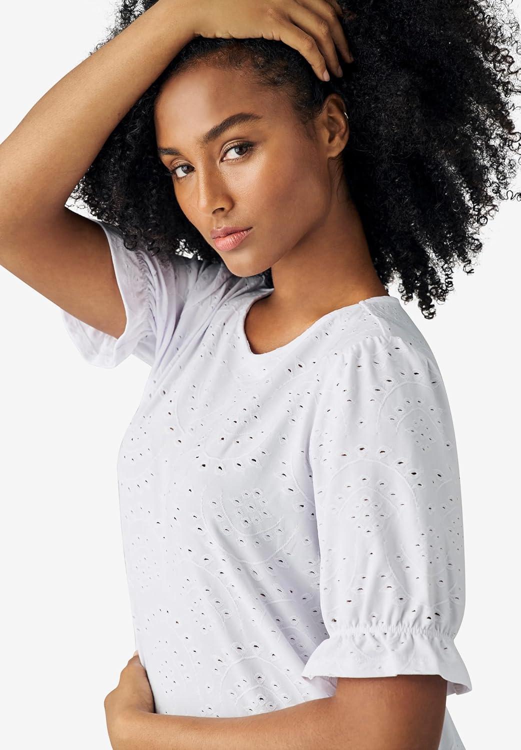 Ellos Plus Size Short Sleeve Eyelet Tee(Aqua Sky)