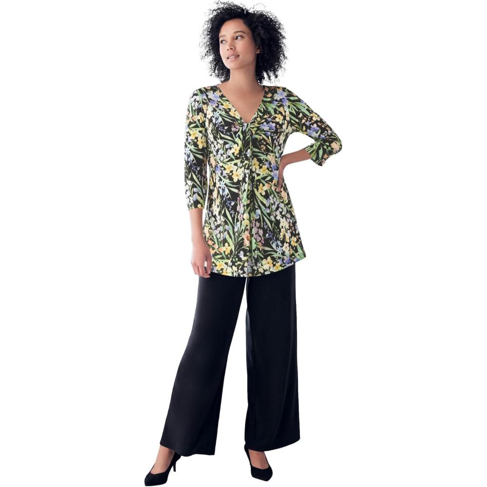 ellos Plus Size Twisted Knot-Front Tunic(Black Pastel Floral)