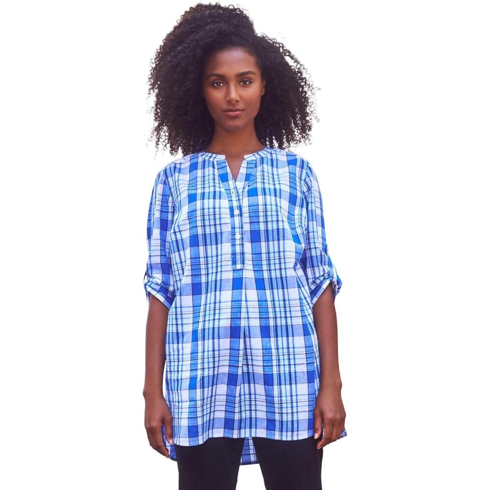 Be the first to review “ellos Women’s Plus Size Striped Henley Tunic Oversized Long Top Wear with Leggings(Blue Plaid)”