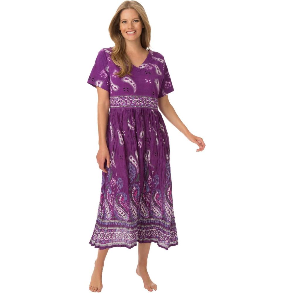 br> Experience comfort and style with our Long Crinkle Cotton Lounger, featuring a mix of pretty and playful prints. Crafted from pure crinkled cotton, this lounger offers a relaxed fit and a wide sweep skirt for laidback ease. Short sleeves and a V-neckline provide breathability, perfect for lounging or sleeping. 44″ length for a perfect fit on all body types.br>Made from pure cotton for a soft, natural touch against your skin.br>Easy care – machine washable, saving you time and effort.br>Imported
