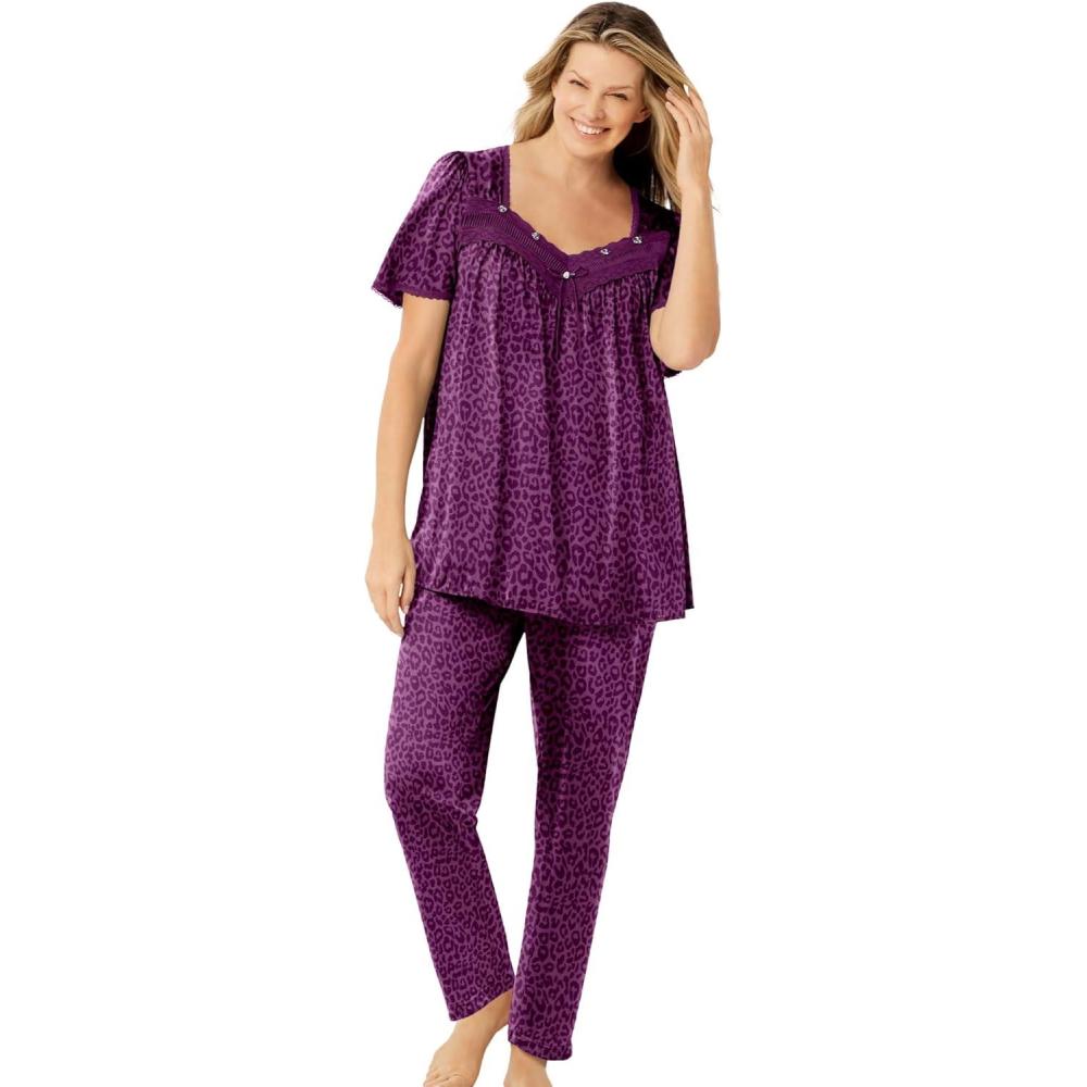 Only Necessities Plus Size Silky 2-Piece PJ Set(Dark Berry Animal)