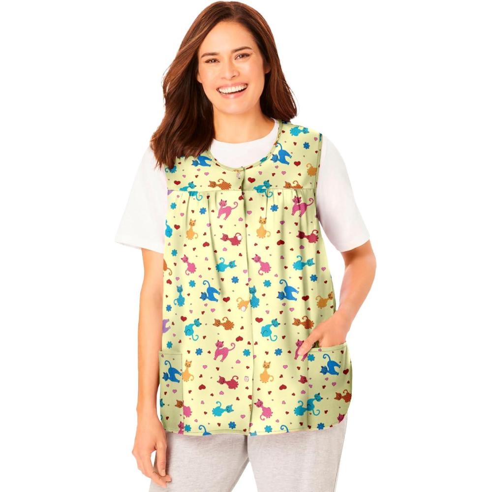 Only Necessities Plus Size Snap-Front Apron(Yellow Cats)