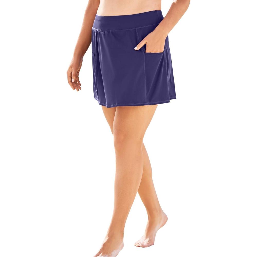 Experience comfort and style with this chic Zip-Pocket Swim Skort, perfect for all your beach and poolside adventures. Stay confident with built-in shorts and an elasticized waist for a snug and comfortable fit. It even features convenient mesh-lined side pockets to store your essentials securely while you swim. Solutions: Chlorine Resistant and UPF 50 Sun Protectionbr>Skirt: 16″ length; Shorts: 5″ inseambr>Nylon/XtraLife spandexbr>Chlorine Resistant Nylon/XtraLife spandex fabric is colorfast and designed to retain fit and resist bagging.br>Hand wash cold. Wash colors separately. Use only non-chlorine bleach. Line dry. Low iron.br>Imported Close Back Details “UPF” stands for Ultraviolet Protection Factor and it measures the Ultraviolet radiation or “UV” protection from the sun provided by a fabric. (Similar to the SPF rating system used for sunscreens.) Our Swimsuits For All styles with UV sun protection have a rating of UPF 50 (the highest possible rating) which means only 1/50th of the sun’s UV rays can pass through, and it blocks 98% of UV rays.