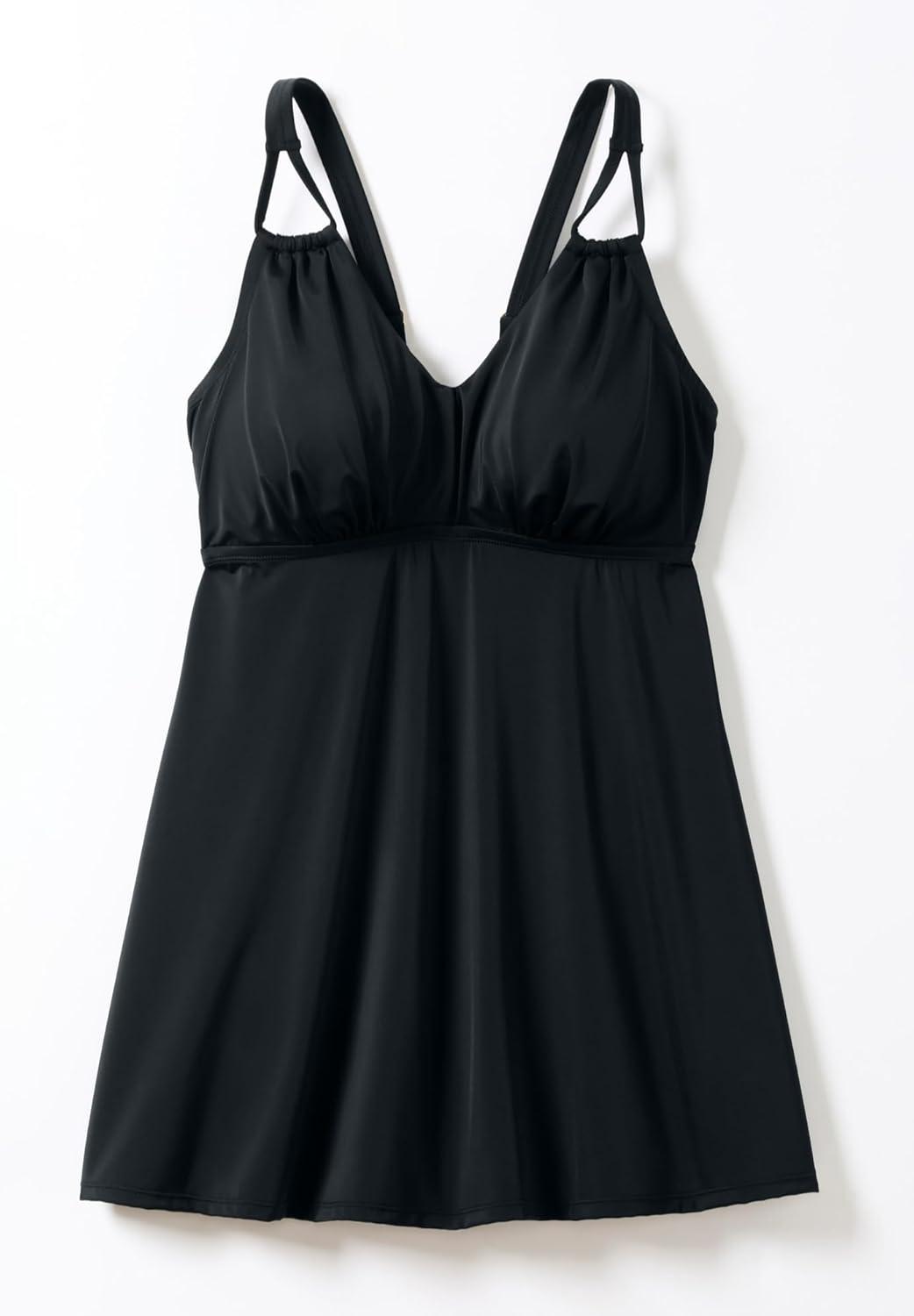 Swimsuits For All Swim 365 Women’s Plus Size Loop-Strap V-Neck Tummy Control Two-Piece Swim Dress(Black)