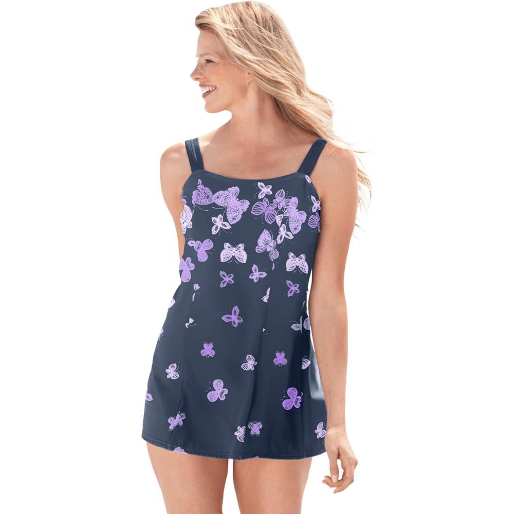 Swimsuits For All Swim 365 Women’s Plus Size Princess-Seam Swim Dress(Ombre Butterfly)