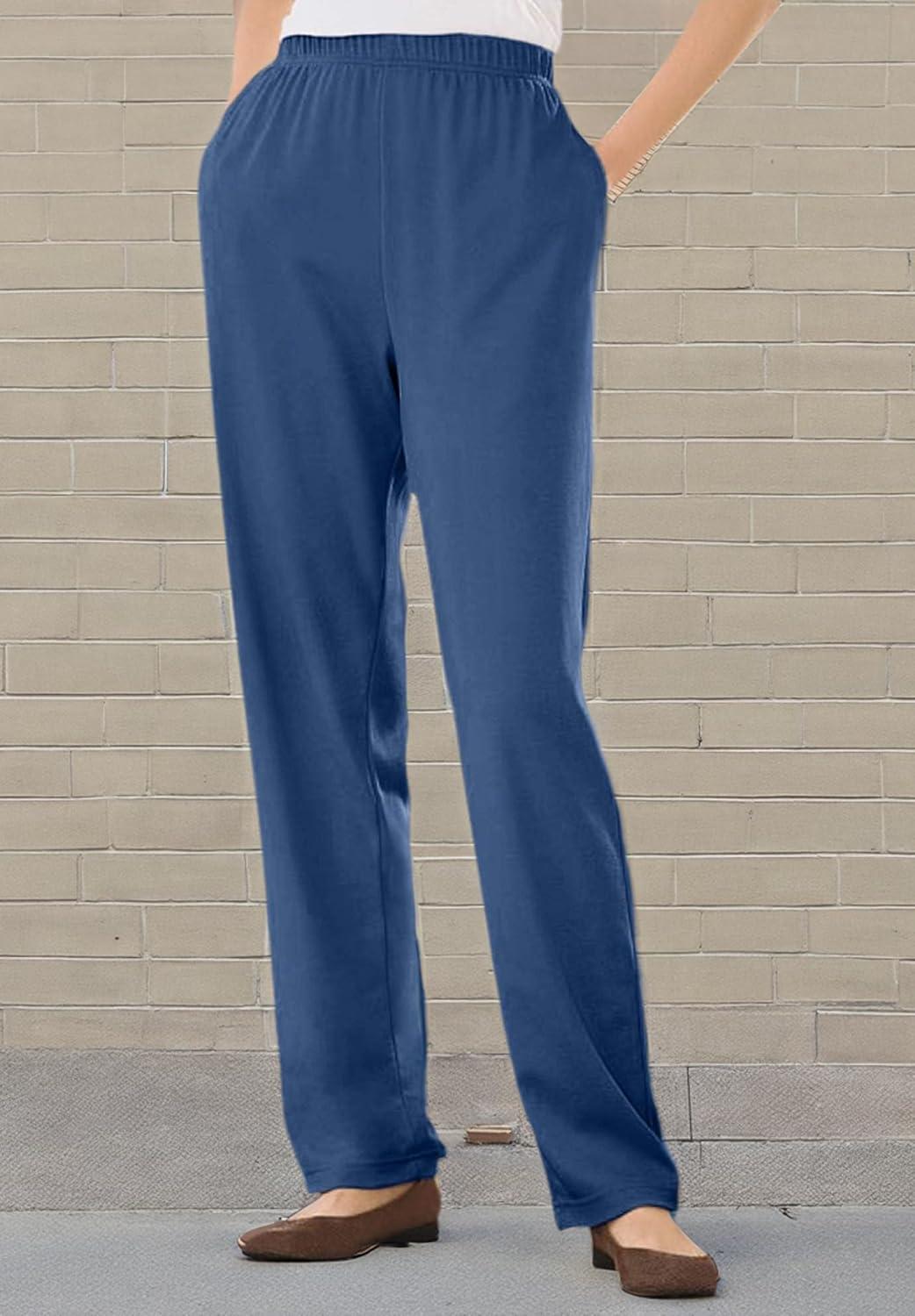 Rated number one for all-day comfort and fantastic versatility, our 7-Day Knit pants should be an important part of your wardrobe in every color. This soft, breathable fabric blend always looks smooth. The full covered elastic waistband offers pull-on convenience and a made-for-you fit. This easy straight-leg cut is perfect for running errands, casual days, dressed-up casual—even lounging at home. The essential side-seam pockets add practicality without compromising style. They sit comfortably at the natural waist for an attractive silhouette. br> Full covered elastic waistband moves with you. br> Average: 30″ inseam. br> Petite 28″ inseam. br> Petite short: 26” inseam. br> Tall 33″ inseam. br> Our trademark cotton/poly interlock knit is smooth on both sides, providing a plush, soft feel against the skin. br> Less bulky, this knit ensures a sleek fit. br> Machine washable. br> Imported. br> Sizes S-6X. br>