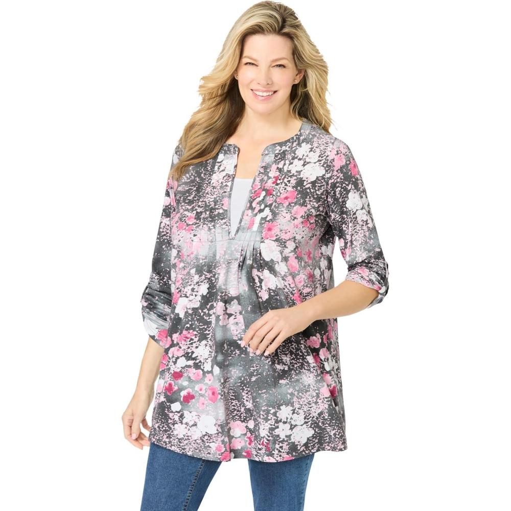 Woman Within Plus Size 7-Day Layered-Look Tunic(Black Meadow)