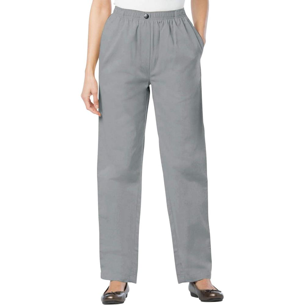 Woman Within Plus Size 7-Day Straight-Leg Elastic-Waist Denim Jean (Petite & Tall Available)(Gunmetal)