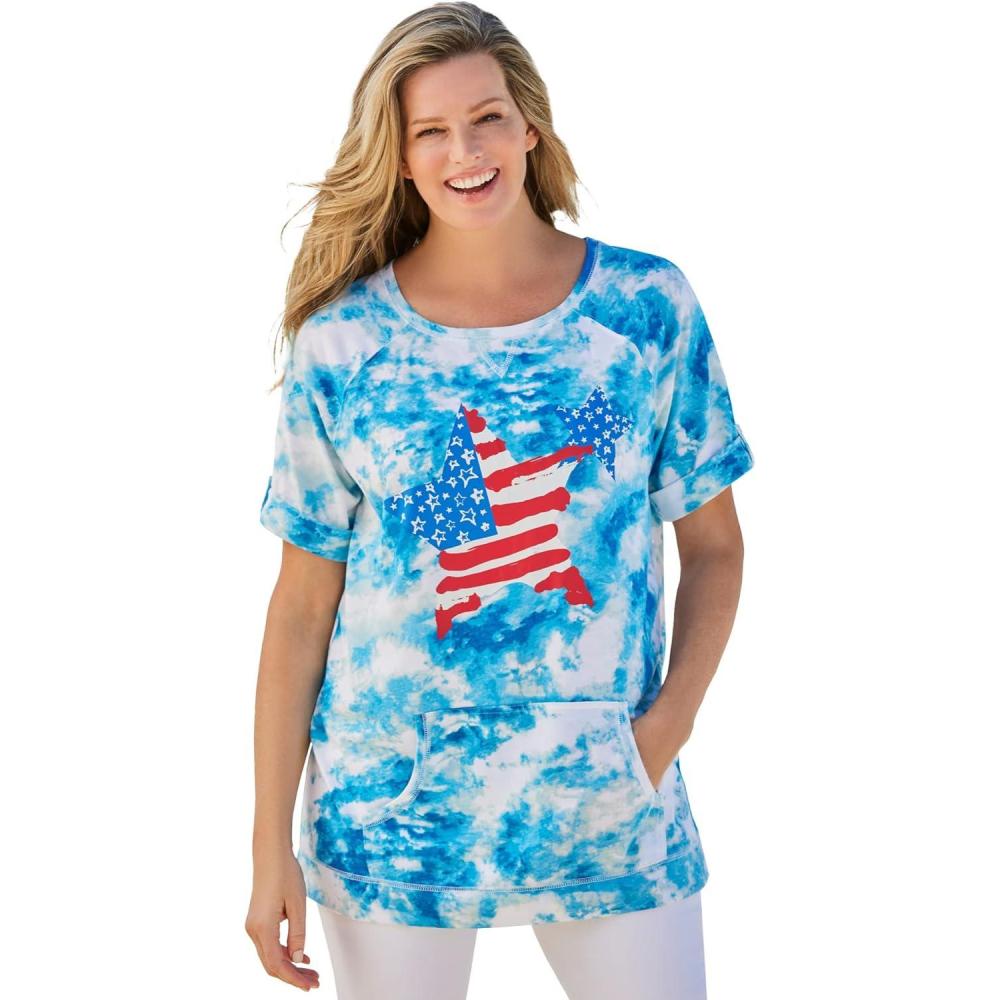 Woman Within Plus Size Americana Kangaroo Pocket Tee(Americana Stars)