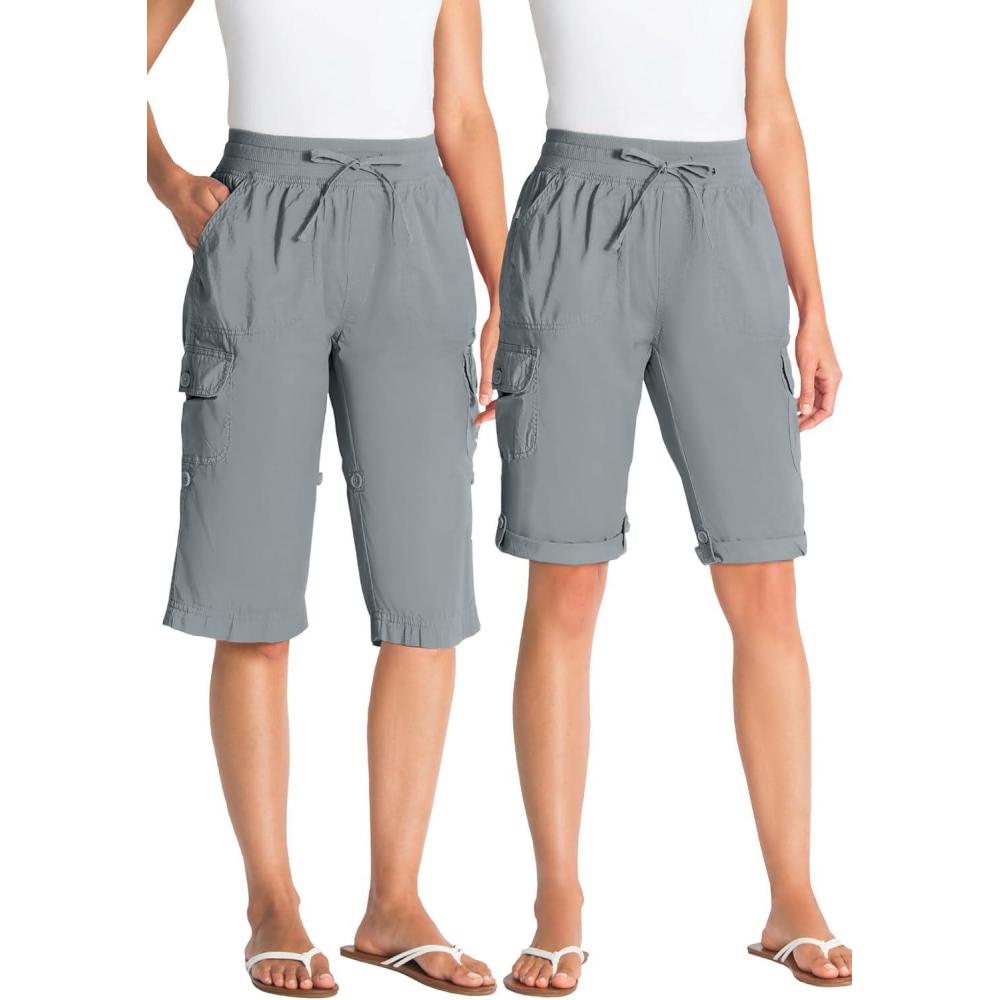 Woman Within Plus Size Convertible Length Cargo Bermuda/Short(Gunmetal)