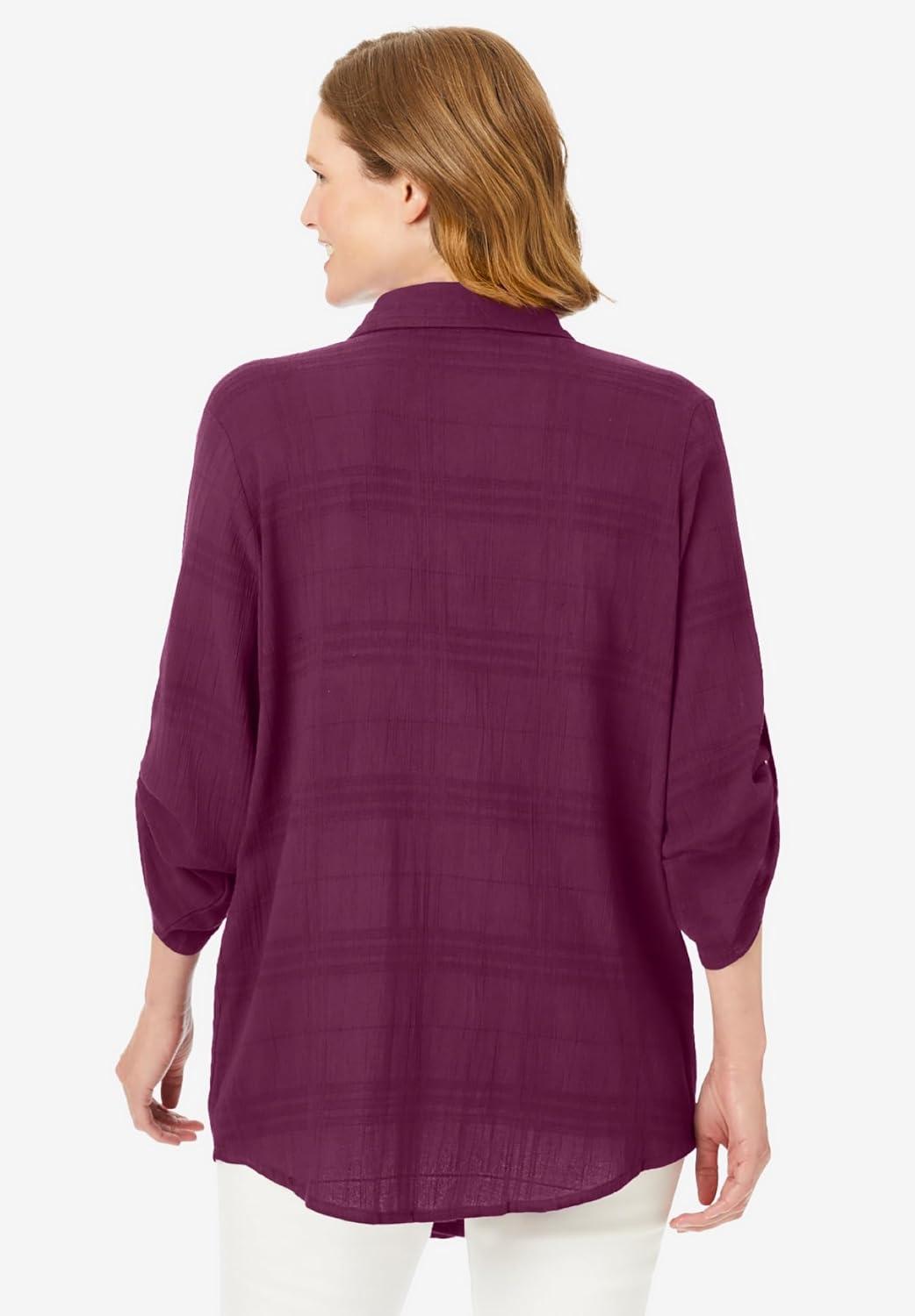 Woman Within Plus Size Cotton Gauze Bigshirt(Deep Claret)