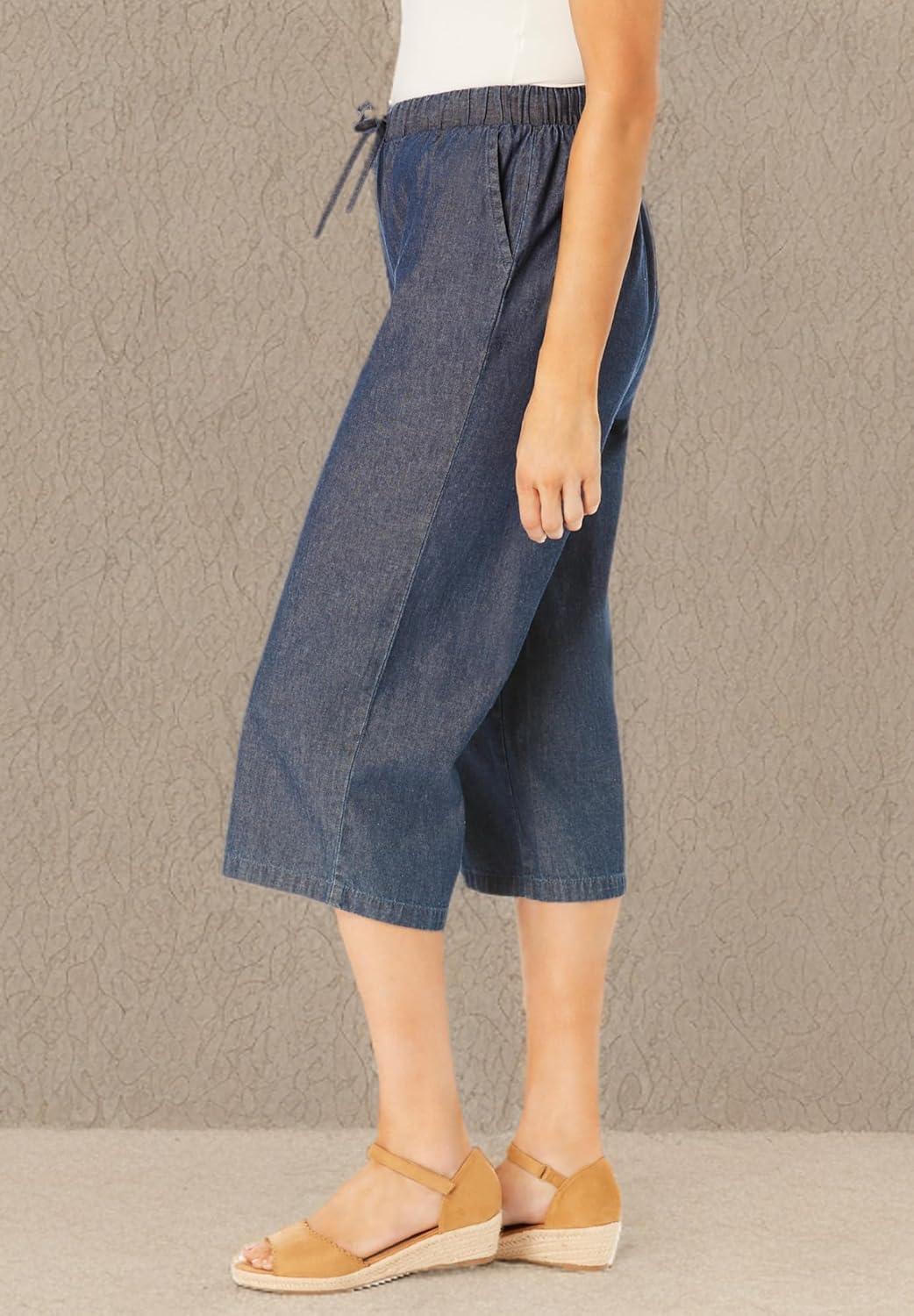 Our Drawstring Denim Capri is the best of warm weather style and comfort. The soft drawstring waistband lets you adjust the fit and the cotton chambray fabric is breathable and easy-care. Non-stretch 100% cotton chambray that gives you a custom-feeling fit as you wash and wear and the denim softens. Experience ultimate comfort with the adjustable drawstring and elastic waist. Enjoy a versatile capri, perfect for warmer weather and everyday wear. br> Crafted from soft, breathable 100% cotton chambray for all-day comfort. br> Includes convenient side pockets for carrying essentials. br> Available in two lengths: Average 21″ inseam and Petite 19″ inseam. br> Easy care, machine washable for effortless maintenance. br> Imported.