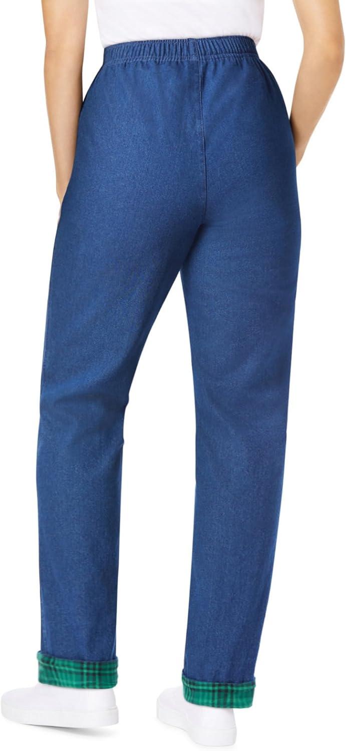 Woman Within Plus Size Elastic-Waist Cotton Straight Leg Denim Pant with Flannel Lining(Medium Stonewash Green)