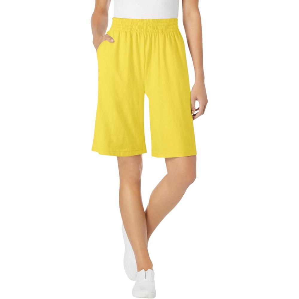 Woman Within Plus Size Elastic-Waist Knit Short(Primrose Yellow)