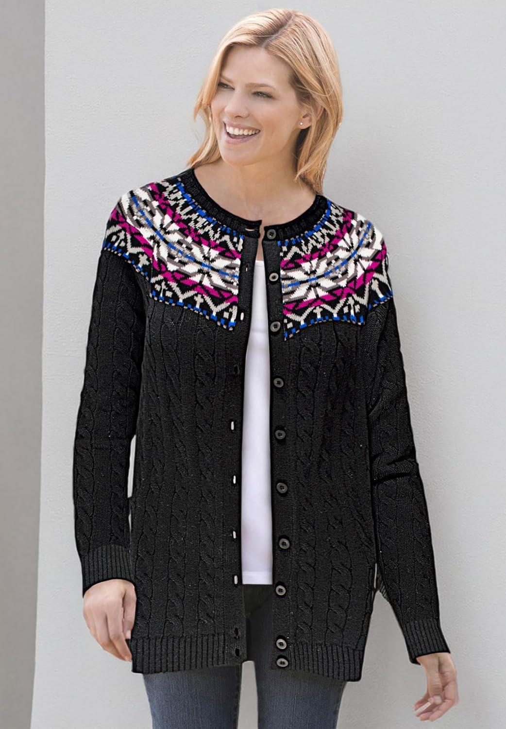Woman Within Plus Size Fair Isle Cardigan(Black Fair Isle Stripe)
