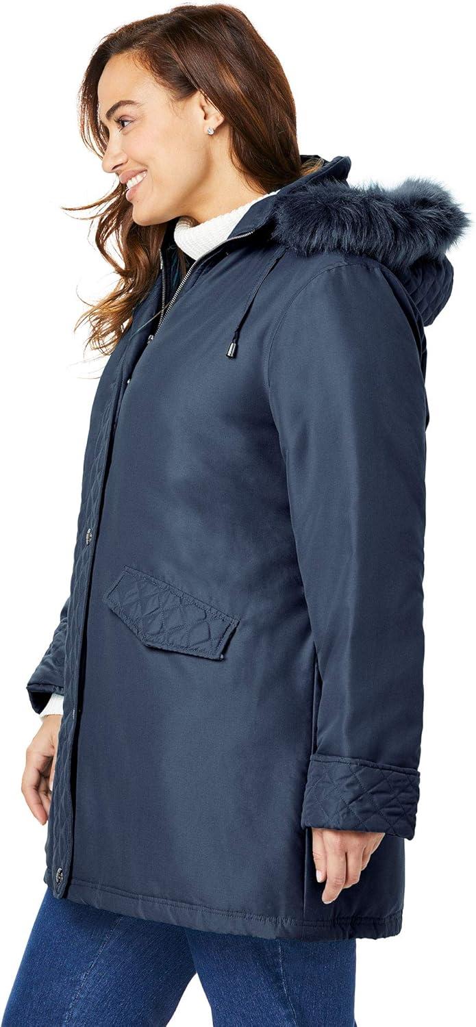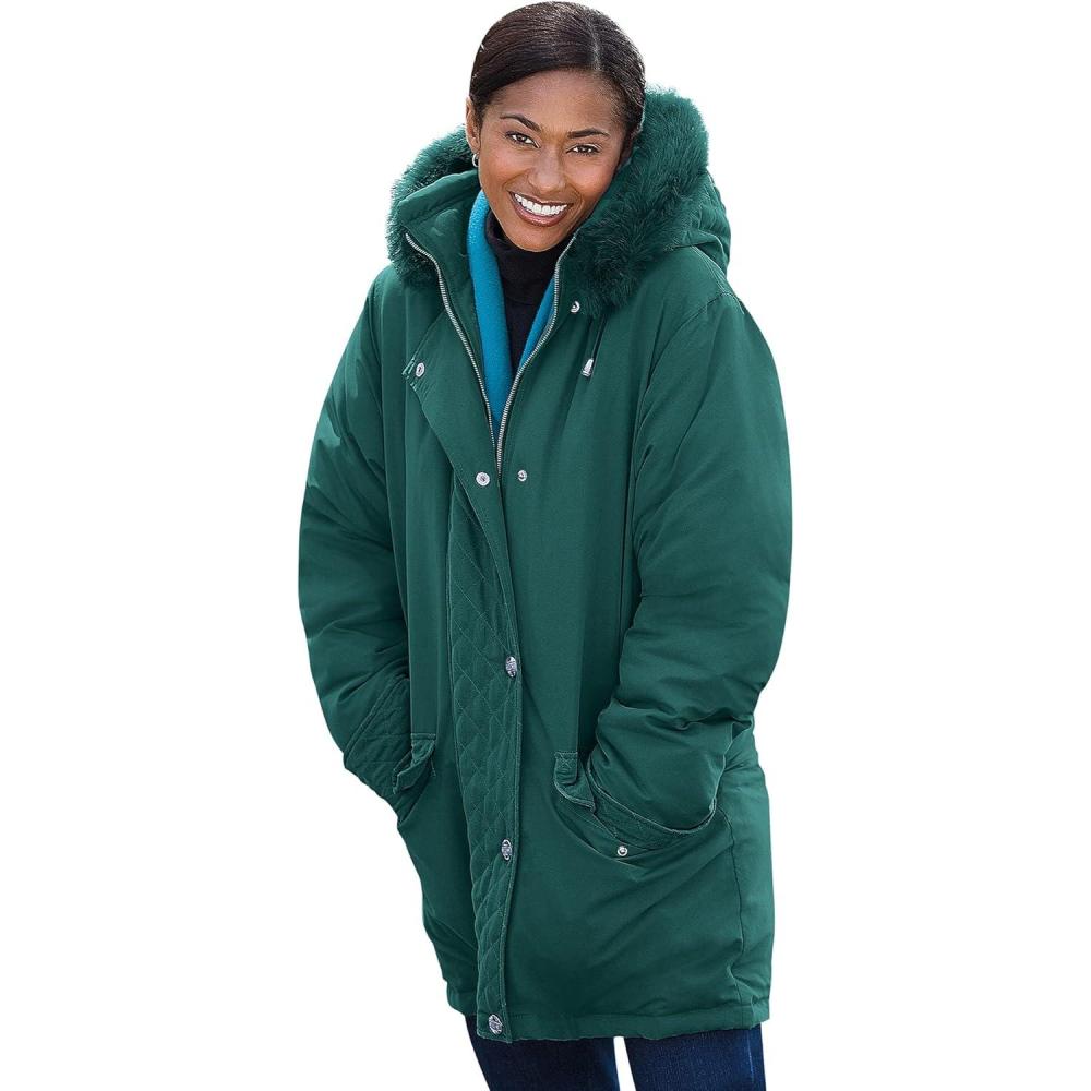 Woman Within Plus Size Faux Fur Down Parka Coat(Emerald Green)