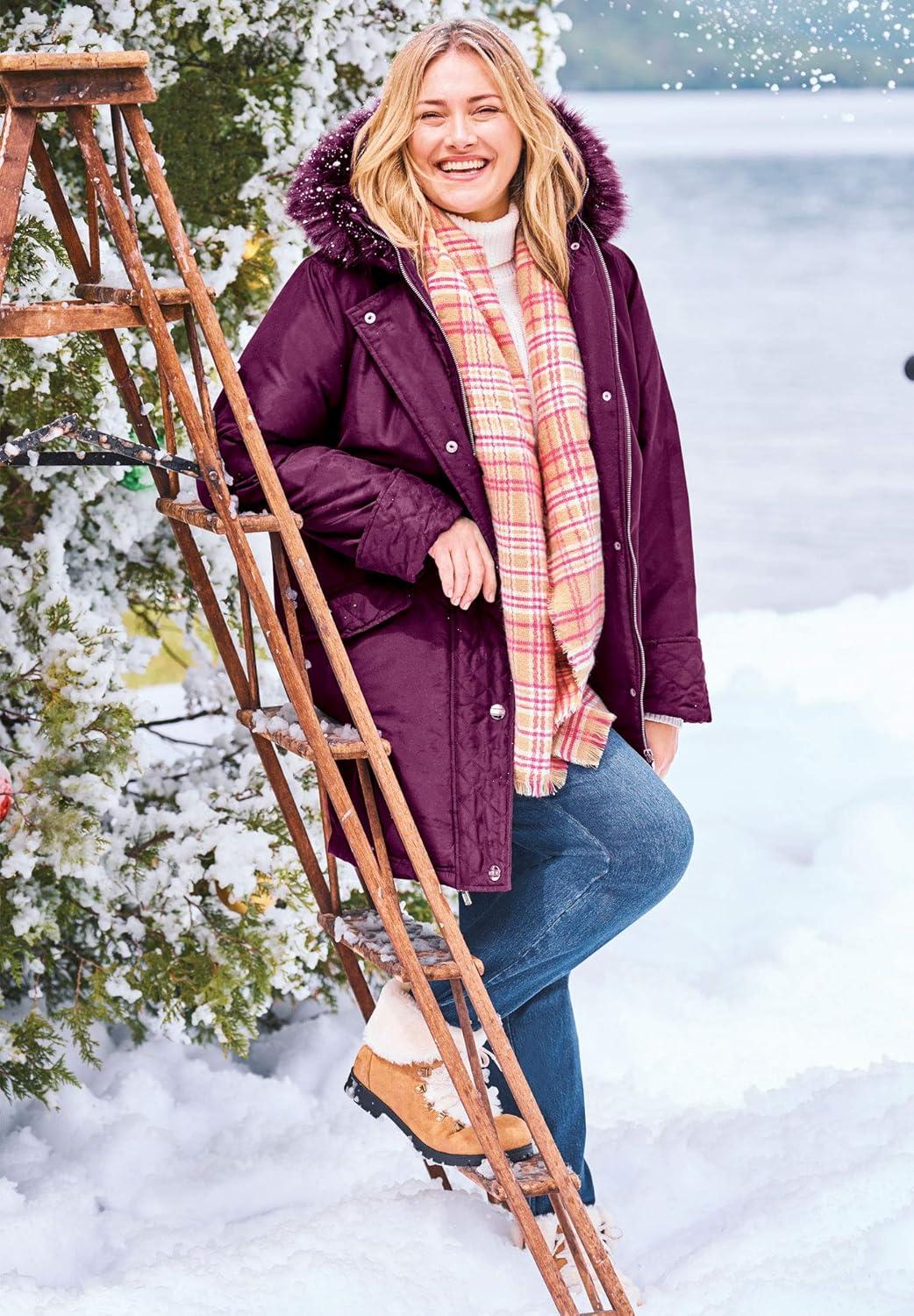 Woman Within Plus Size Faux Fur Down Parka Coat(Navy)