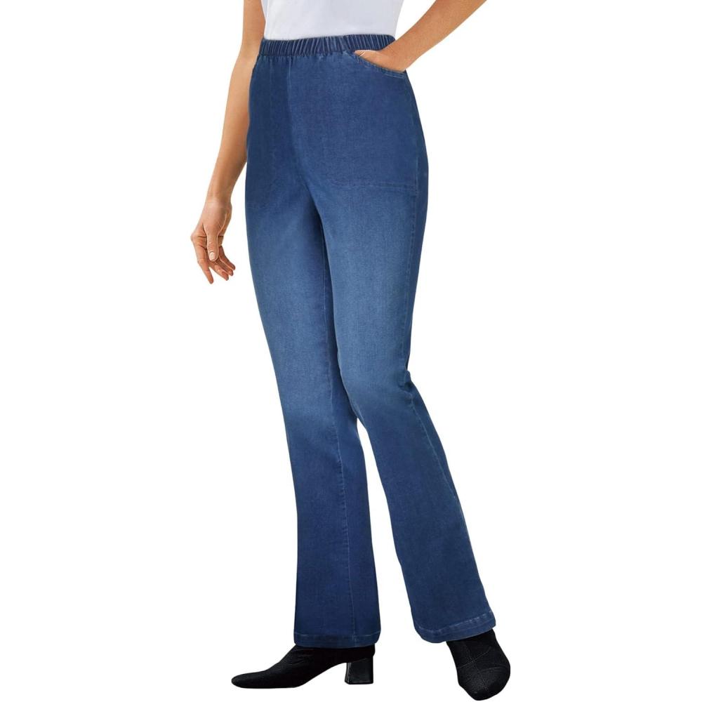 Woman Within Plus Size Fineline Stretch Denim Pull-On Bootcut Jeans(Stonewash Sanded)