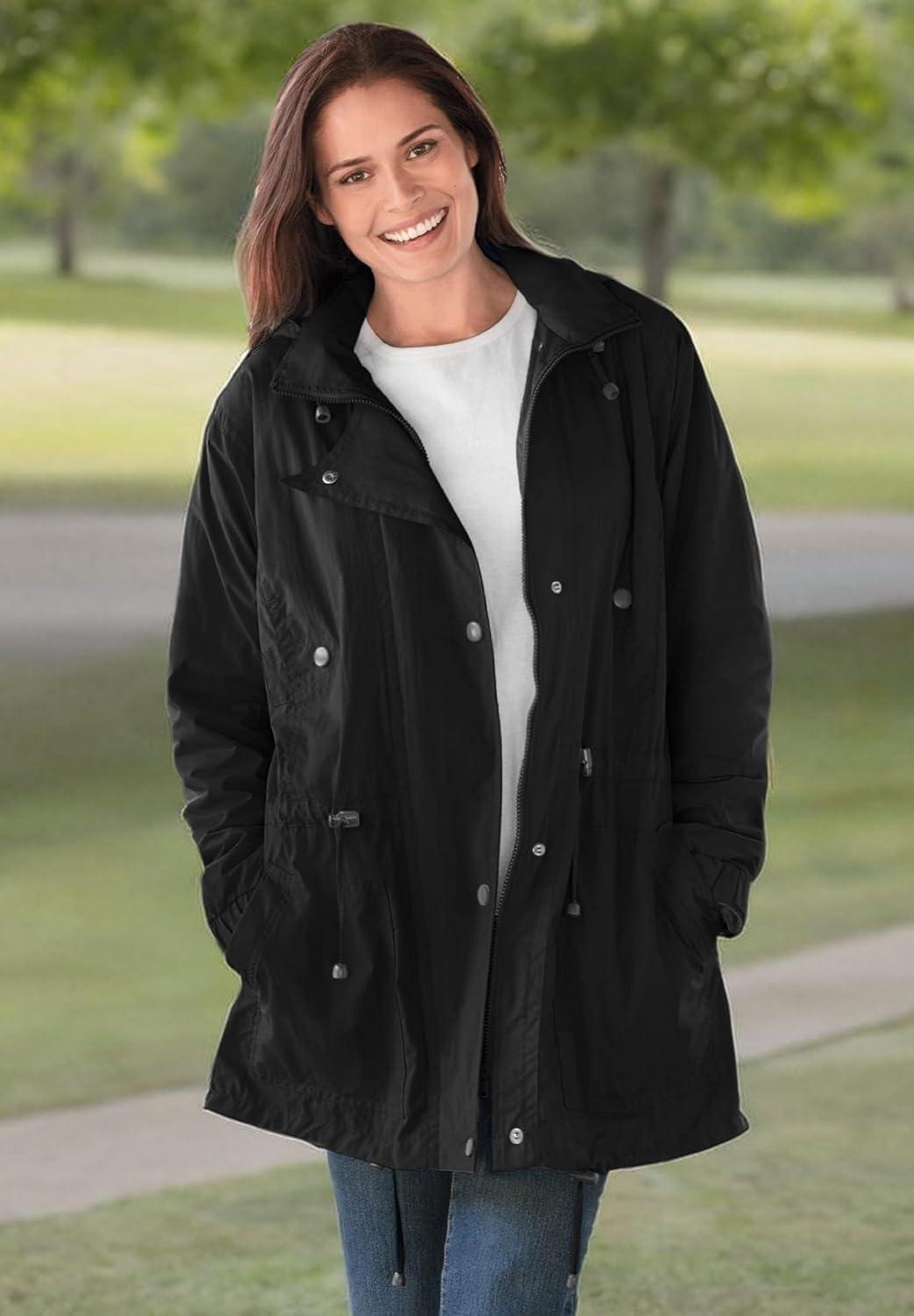 Woman Within Plus Size Fleece-Lined Taslon Anorak(Black)