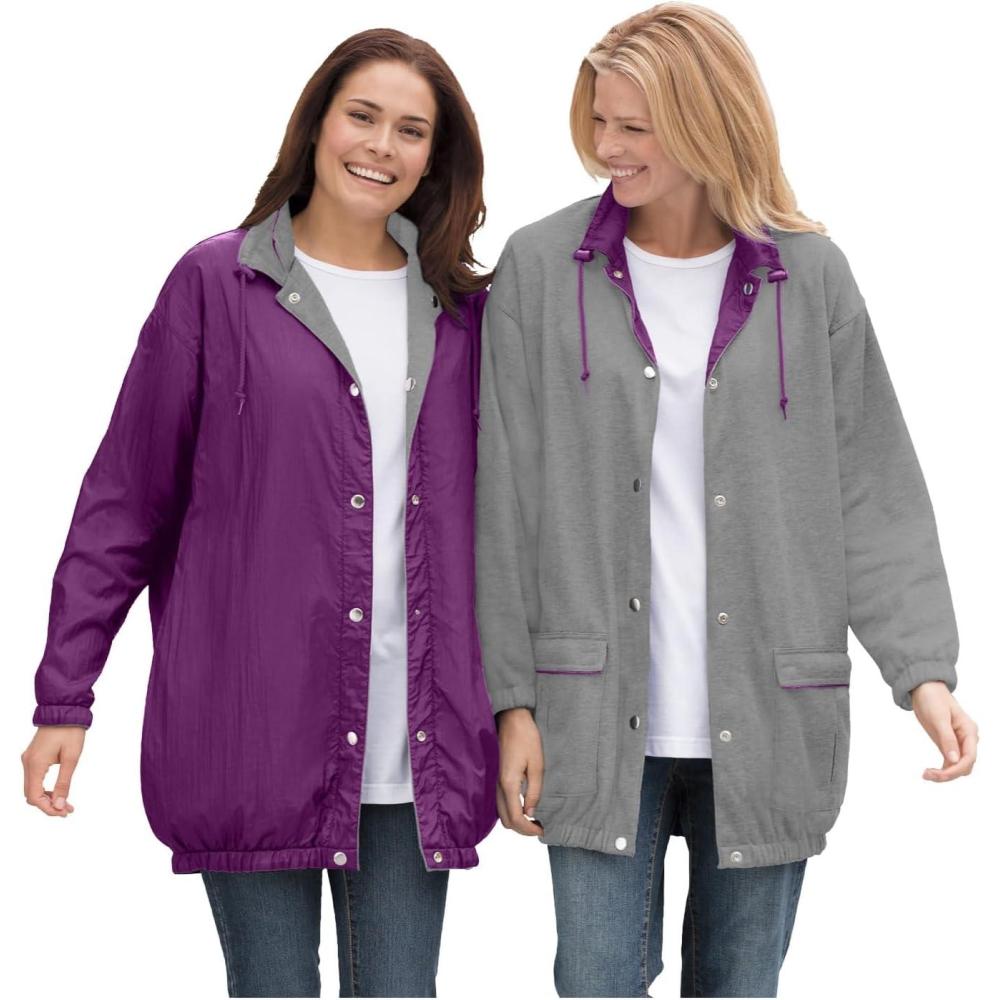 Woman Within Plus Size Fleece Nylon Reversible Jacket(Plum Purple Medium Heather Grey)