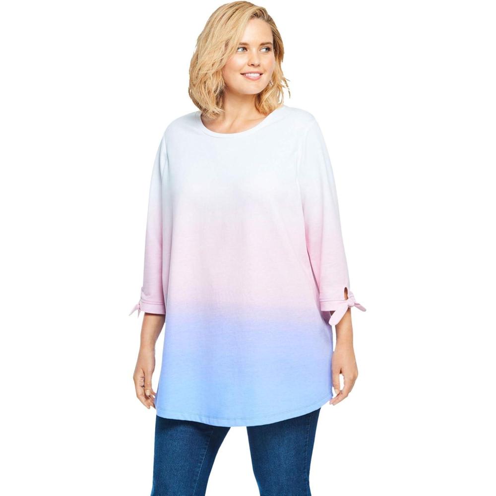 Woman Within Plus Size French Terry Tie-Sleeve Sweatshirt(Pink Ombre)