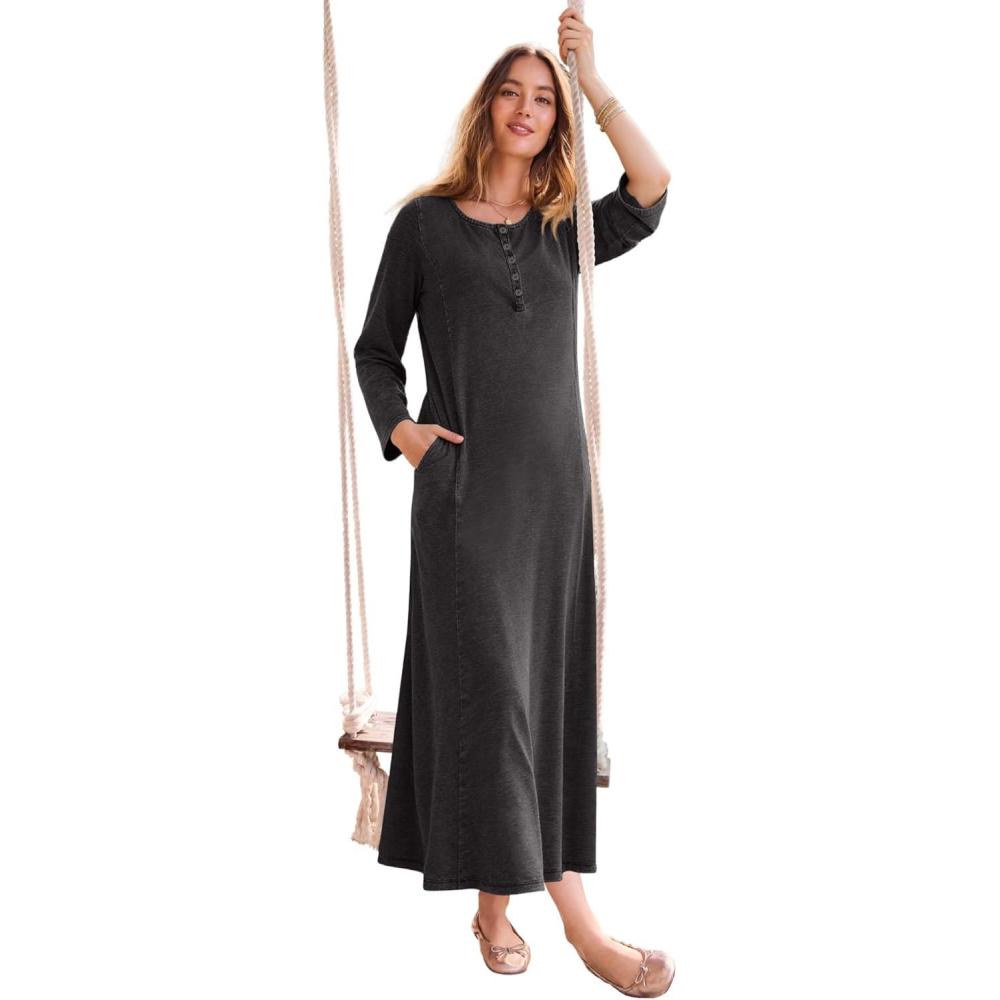 Woman Within Plus Size Henley Tee Maxi Dress(Black Wash)