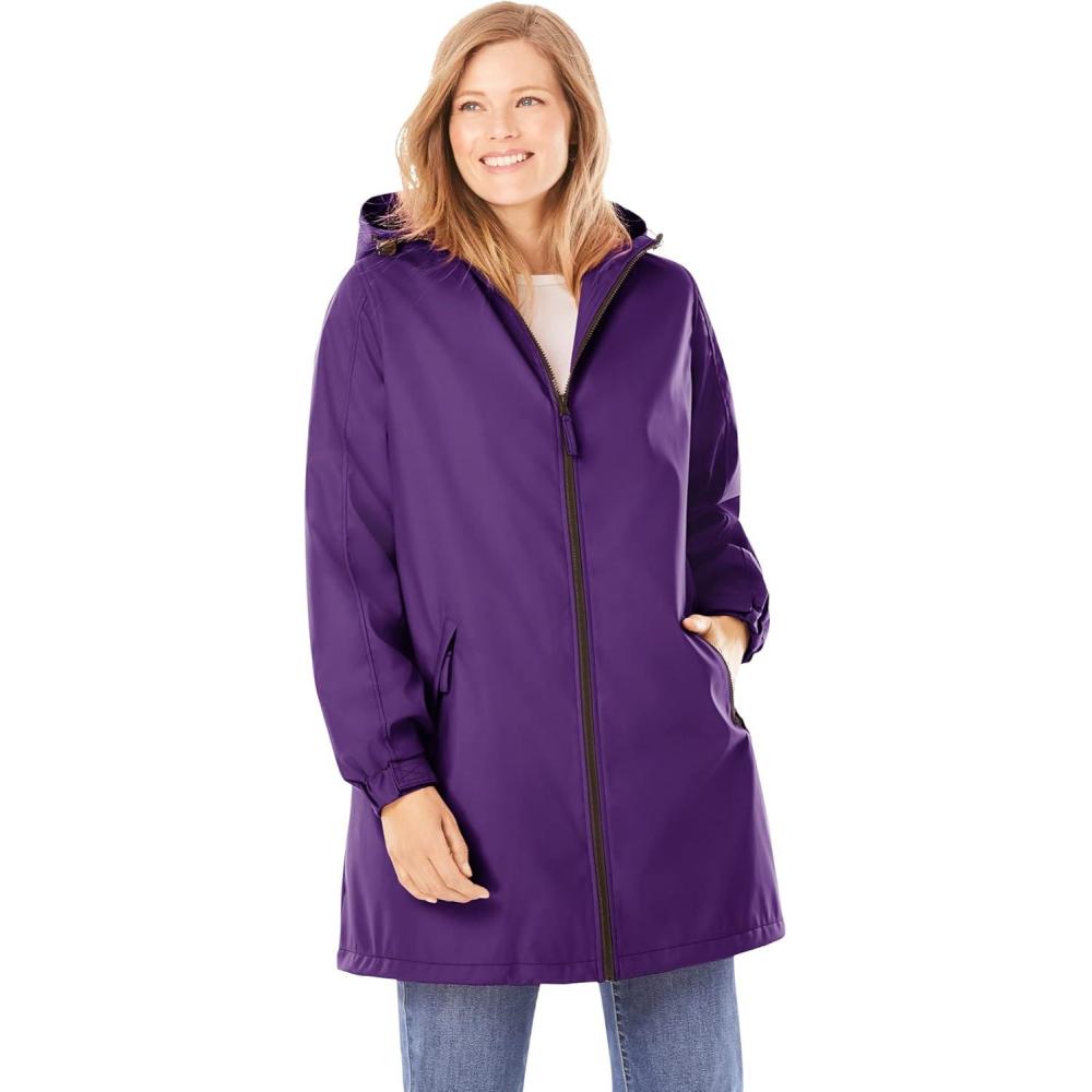 Woman Within Plus Size Hooded Slicker Raincoat(Radiant Purple)