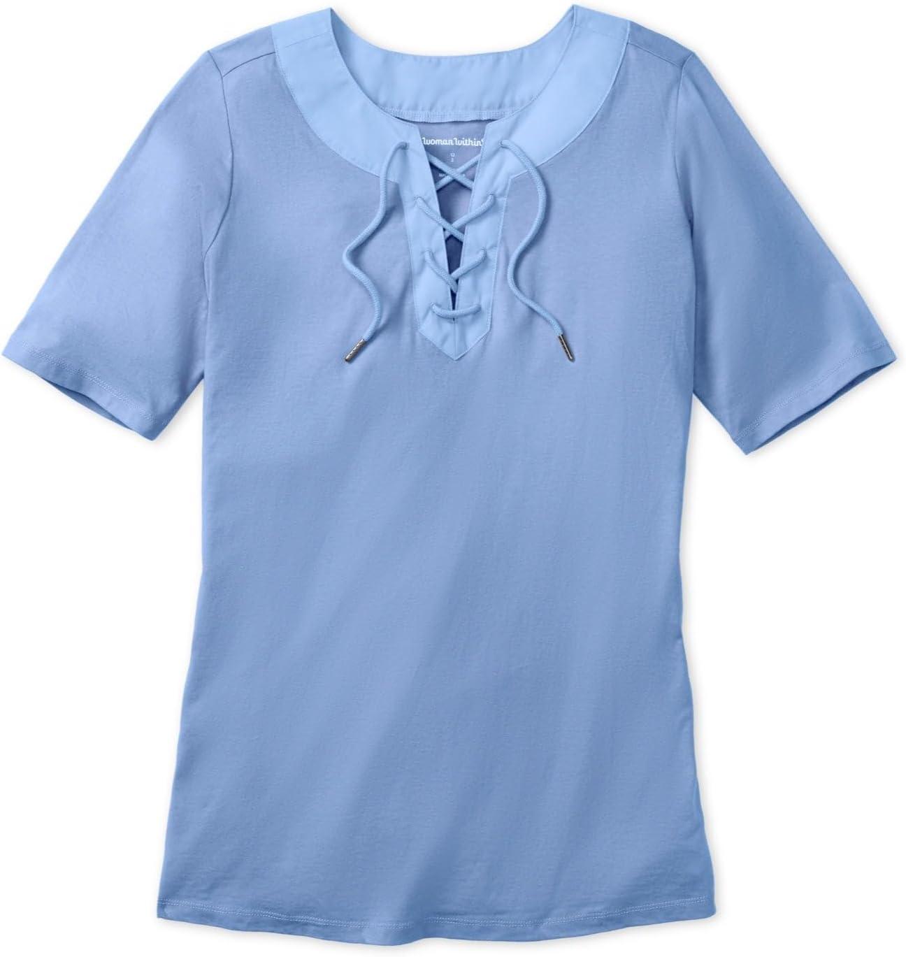 Woman Within Plus Size Lace-Up Knit Tee(French Blue)