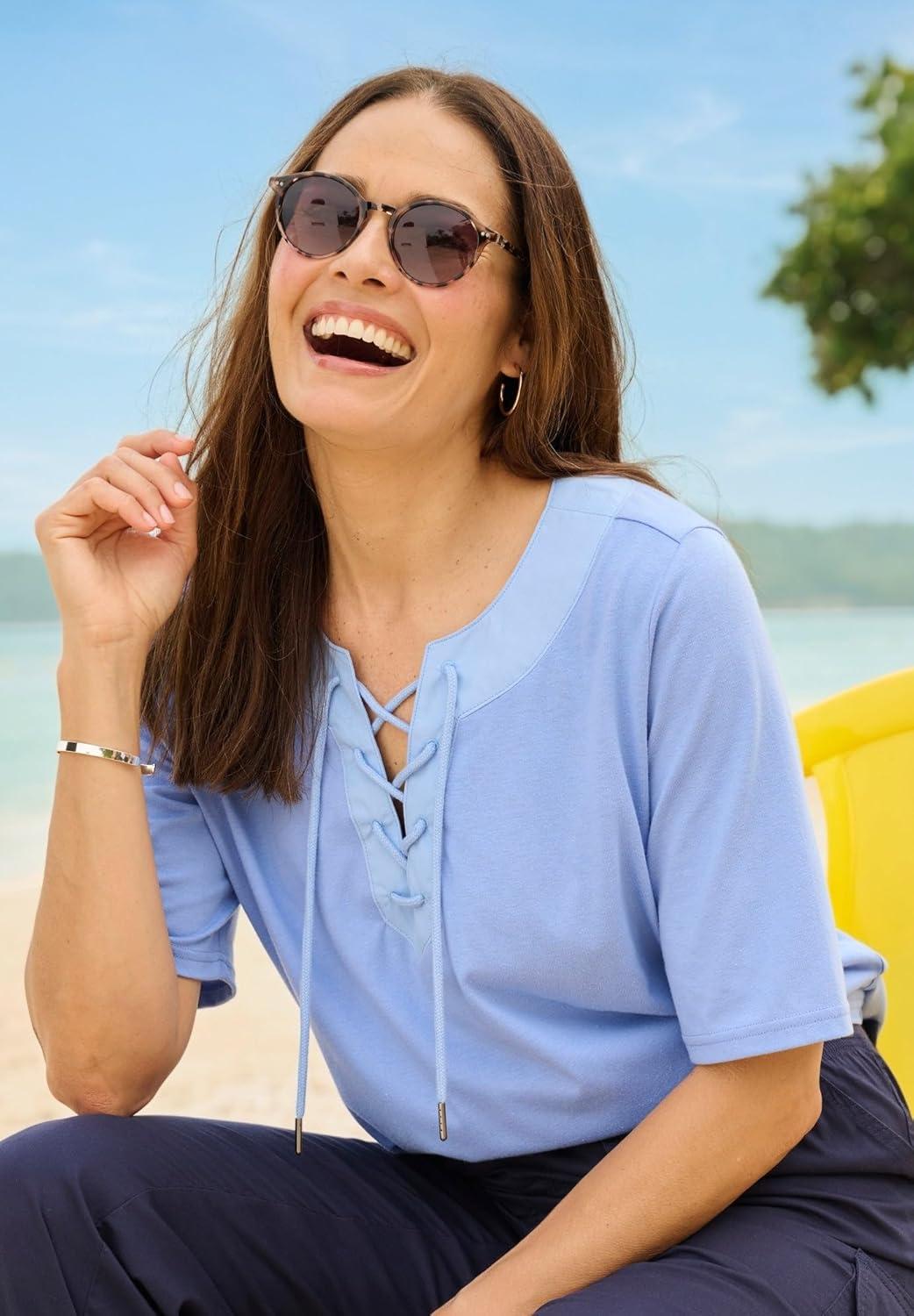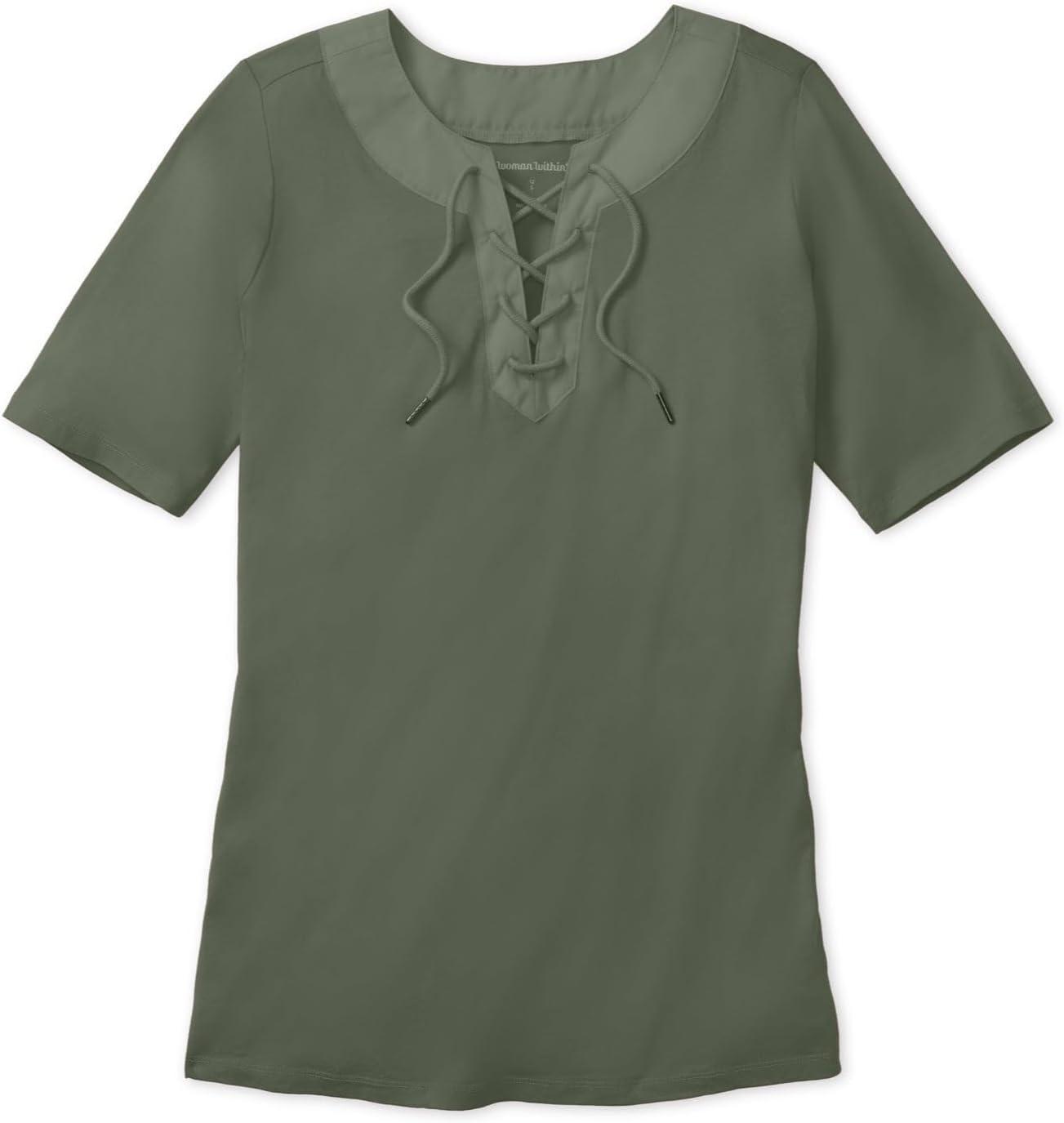 Woman Within Plus Size Lace-Up Knit Tee(Olive Green)