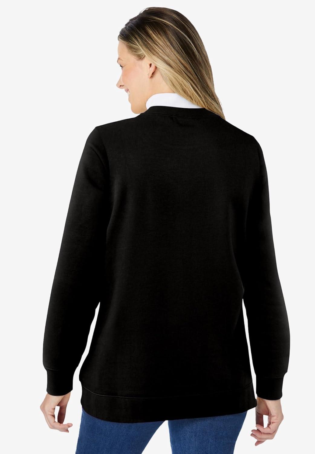 Woman Within Plus Size Layered-Look Sweatshirt(Black Floral Heart)