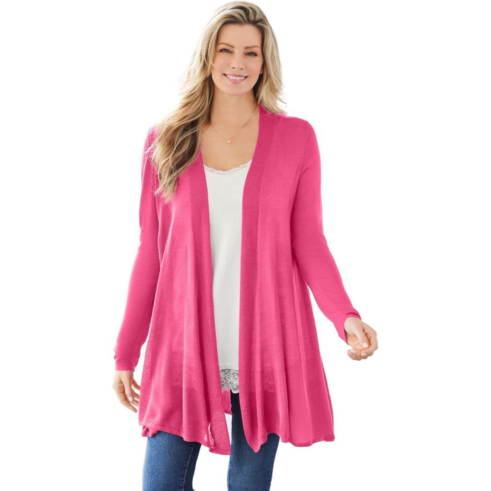 Woman Within Plus Size Lightweight Open Front Cardigan(Peony Petal)