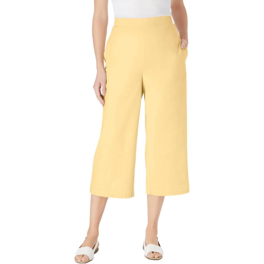 Woman Within Plus Size Linen Capri (Petite Available)(Banana)
