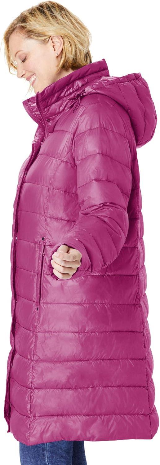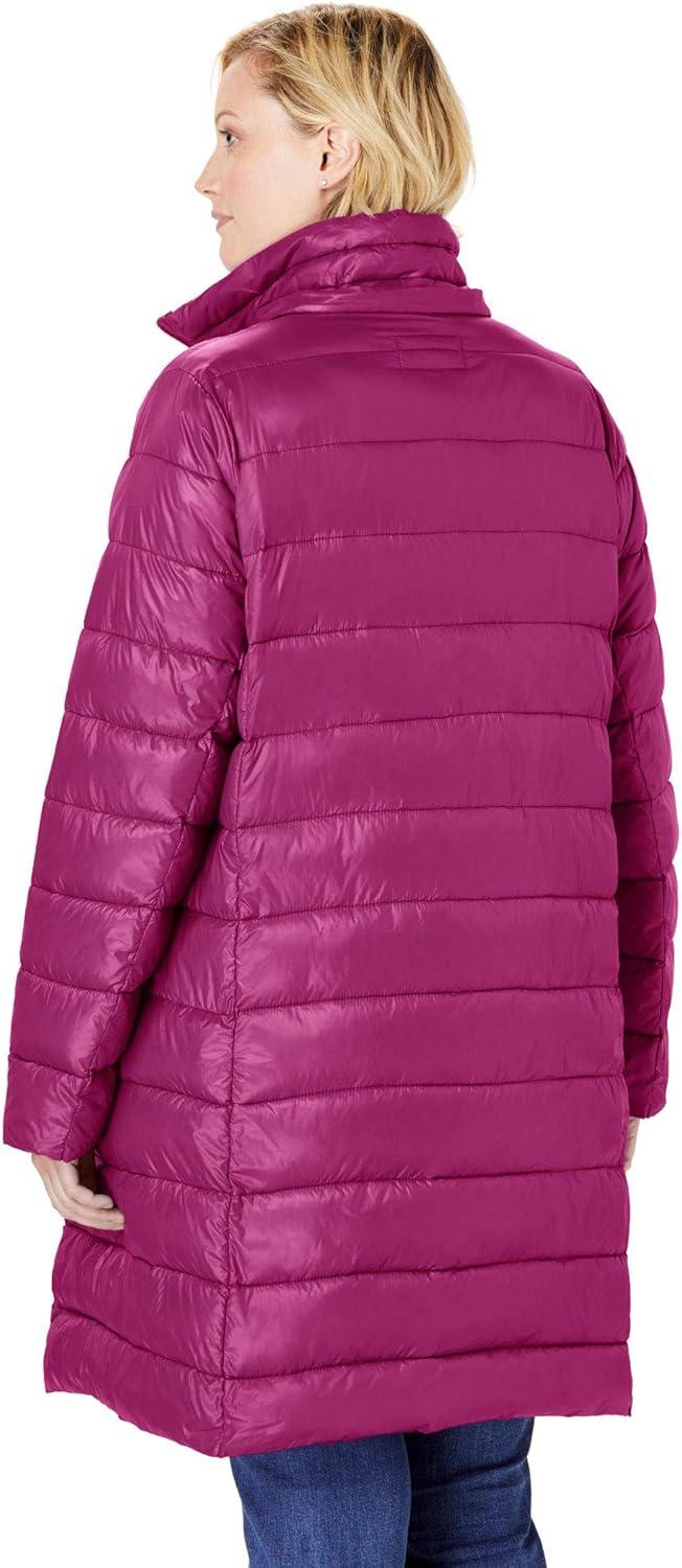 Woman Within Plus Size Long Packable Puffer Jacket(Navy)