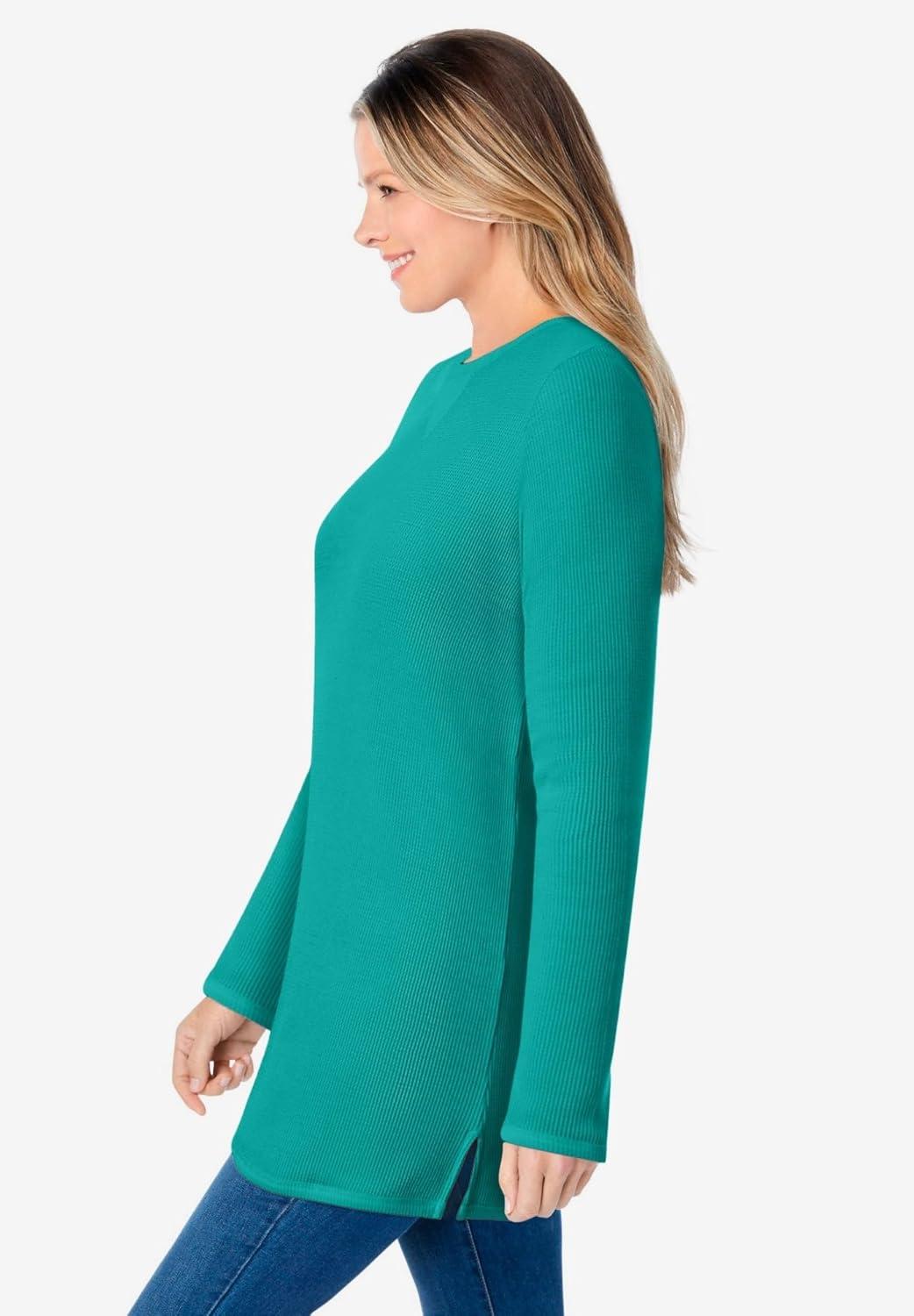 Woman Within Plus Size Long-Sleeve Crewneck Soft Waffle Knit Thermal Shirt(Waterfall)