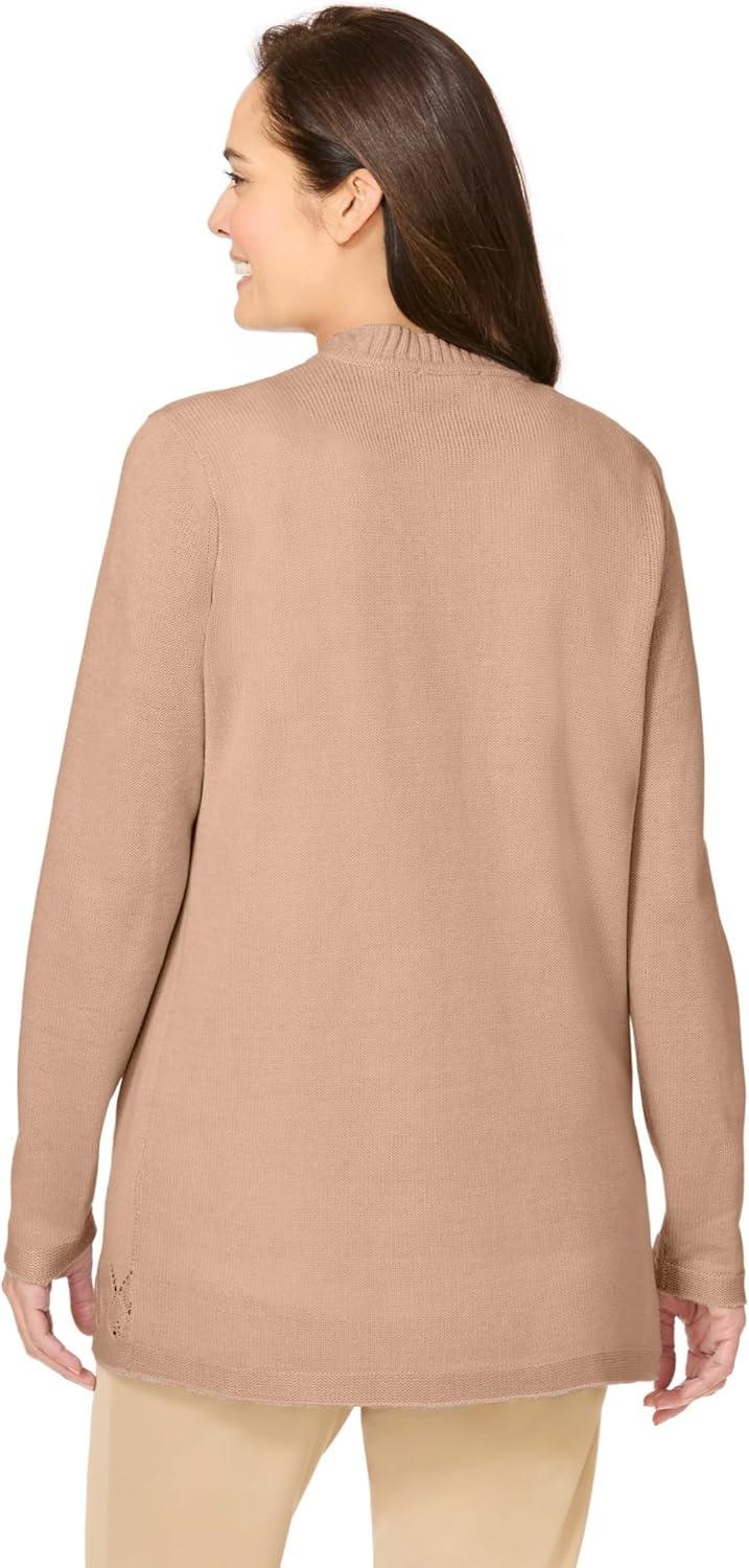 Woman Within Plus Size Long-Sleeve Pointelle Cardigan(New Khaki)