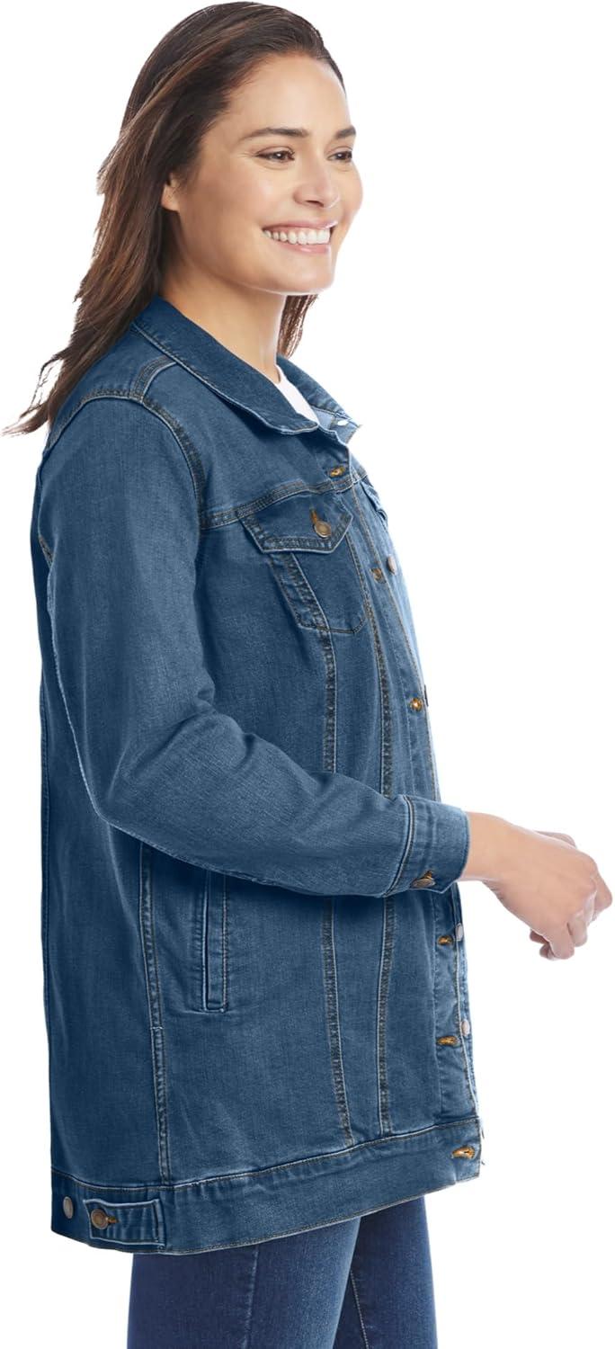 Woman Within Plus Size Long Stretch Denim Jacket Oversized Jean Jacket(Olive Green)