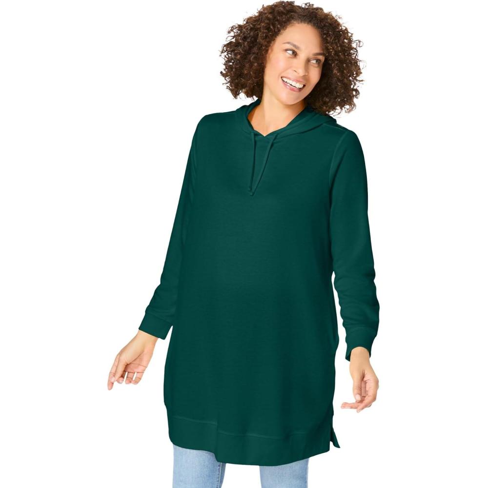 Woman Within Plus Size Longer-Length Hoodie Sweatshirt.(Emerald Green)