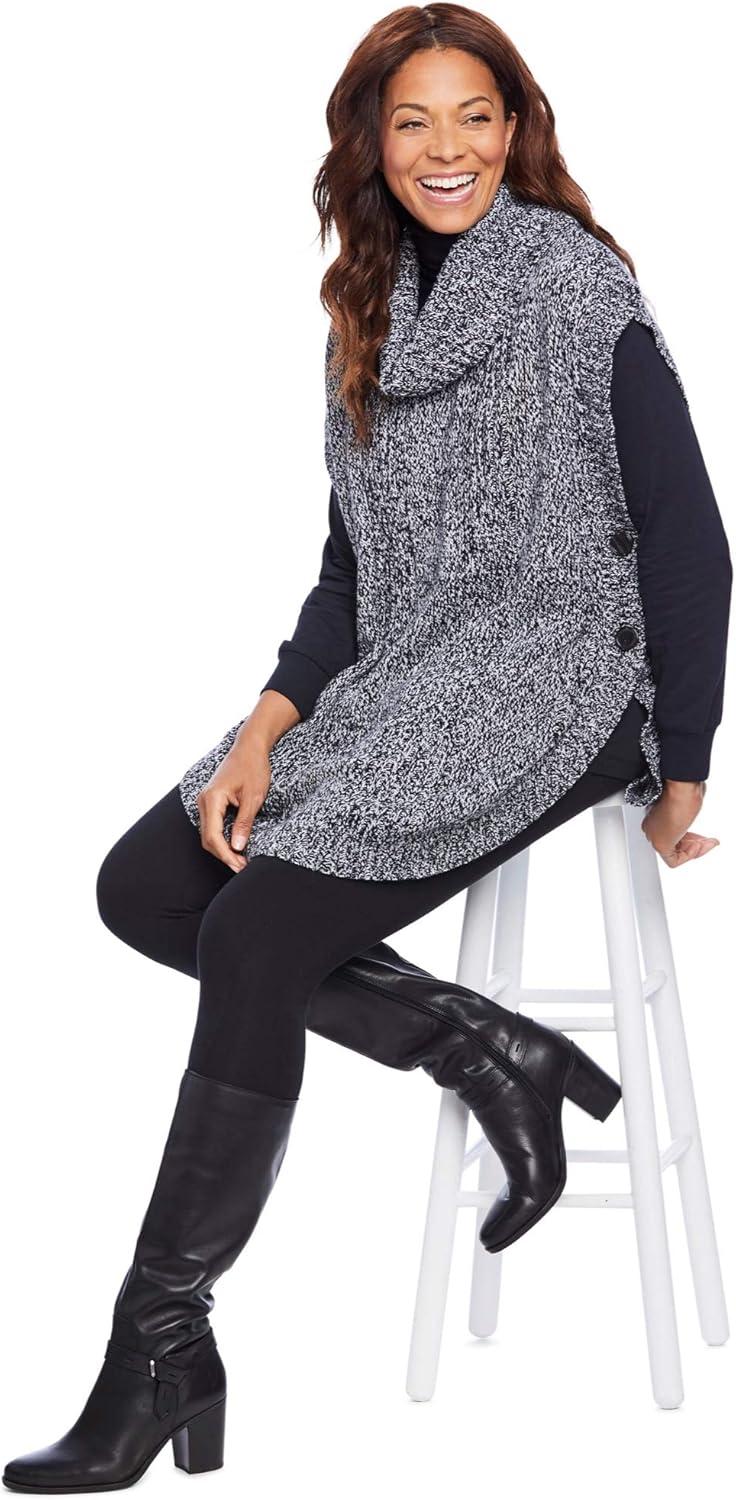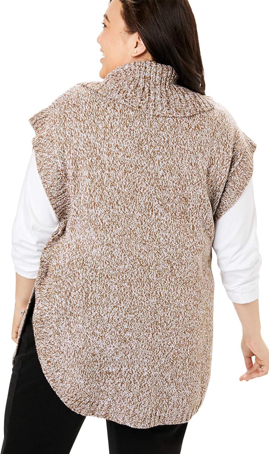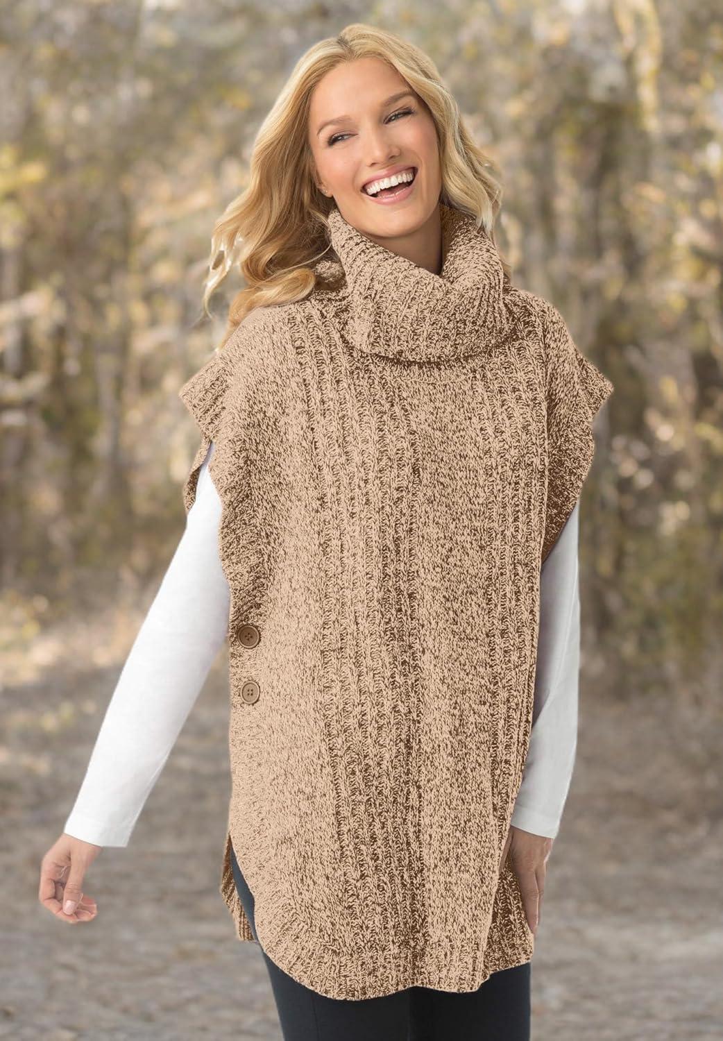 Woman Within Plus Size Marled Knit Cowl Neck Poncho(New Khaki Chocolate Marled)