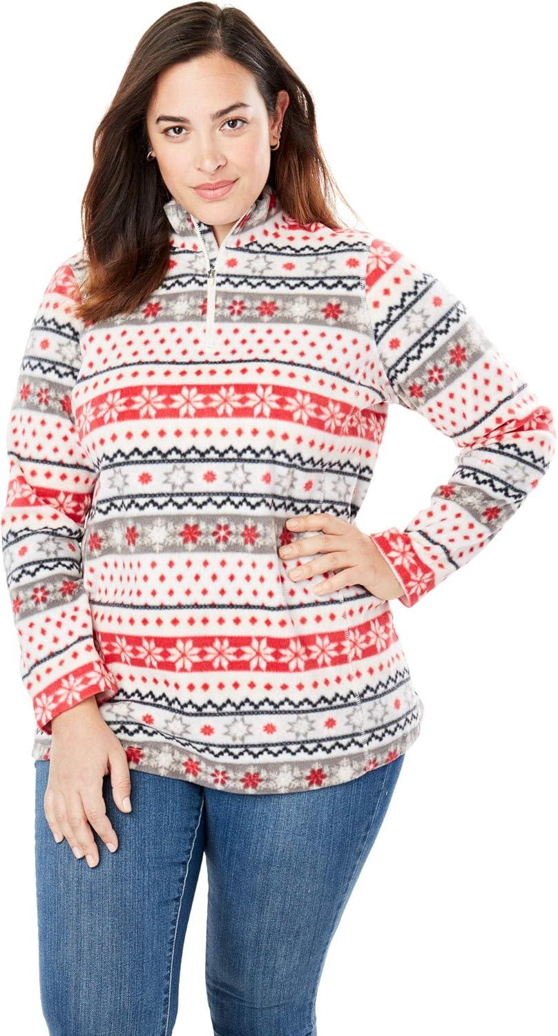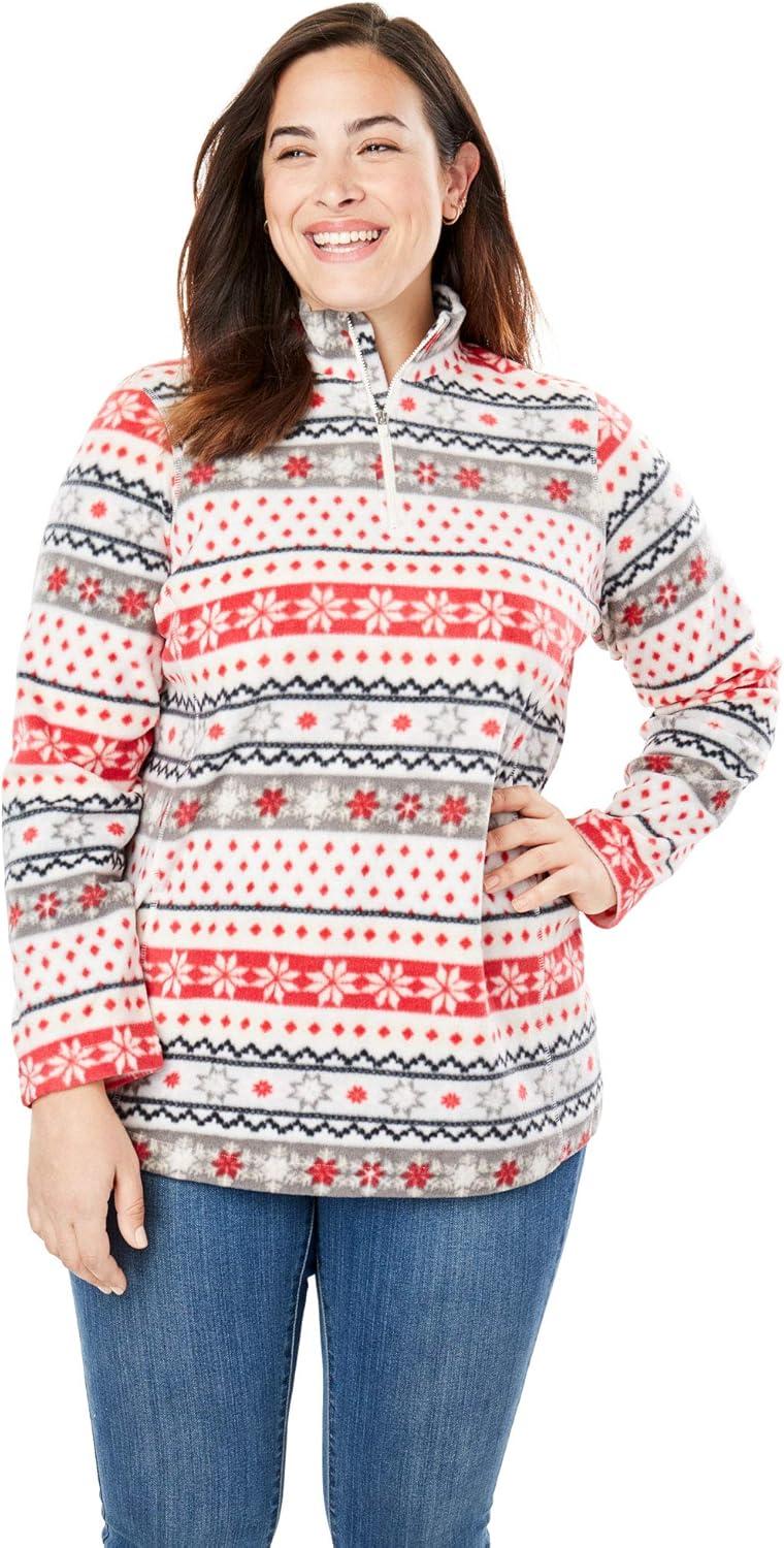 Woman Within Plus Size Microfleece Quarter-Zip Pullover(Black)
