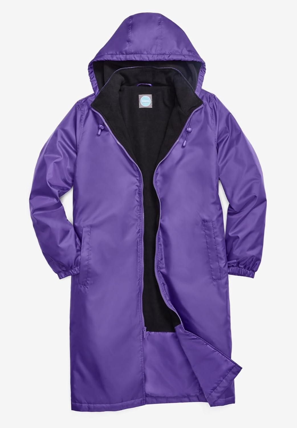 Rain is no match for this Mid-Length Raincoat. It's water-resistant and keeps you warm thanks to a cozy fleece-lined body and hood. Water-resistant br> Fleece-lined body and hood br> Full-zip front and zip off hood with adjustable pulls br> Lined sleeves br> Outside welt pockets and inside security pocket br> Elastic cuffs br> 42″ length br> Shell and lining woven poly; imported br> Machine wash