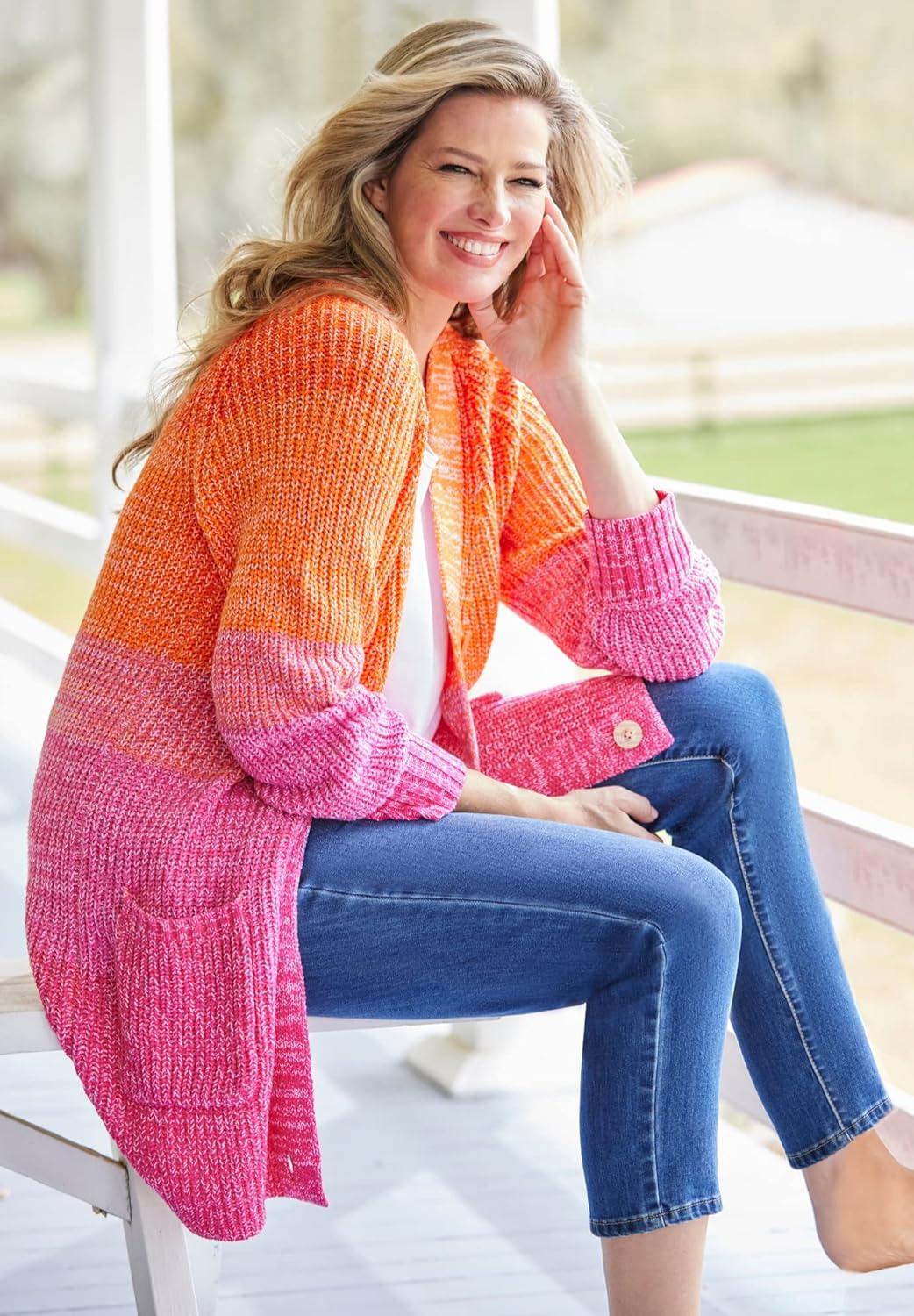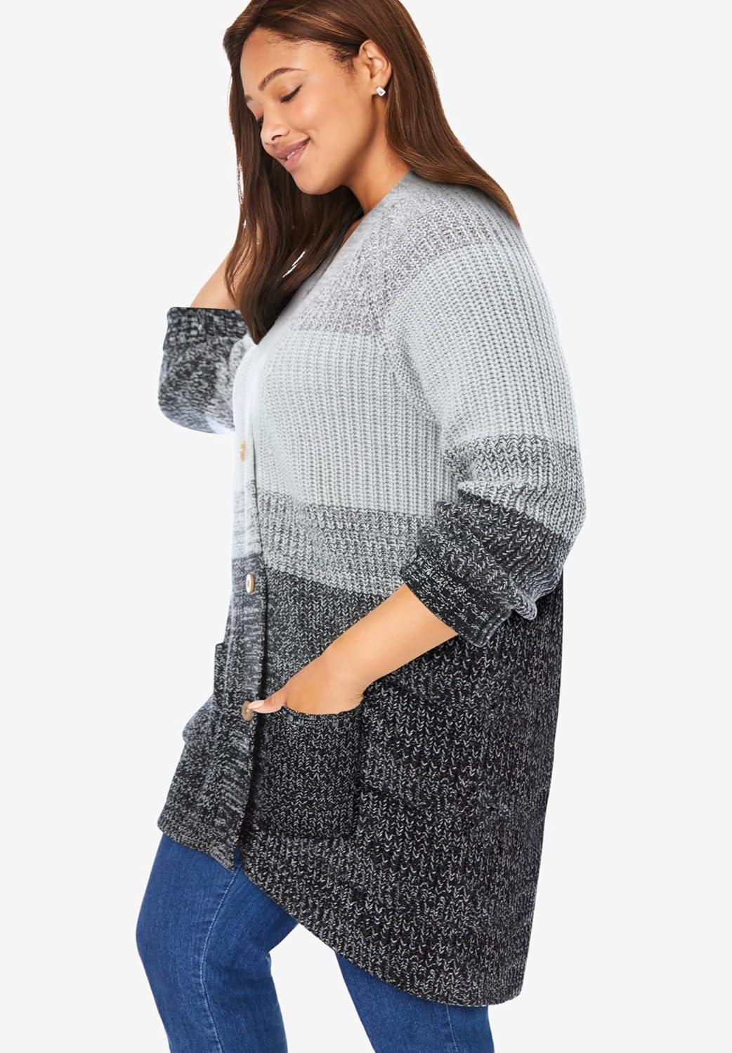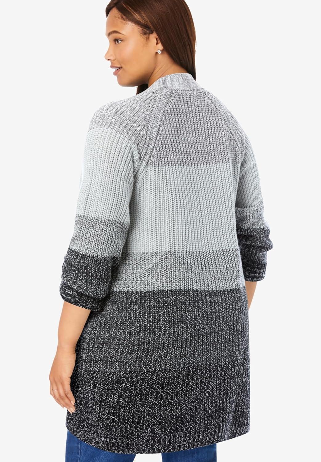 Woman Within Plus Size Ombre Shaker Cardigan(Black Ombre)