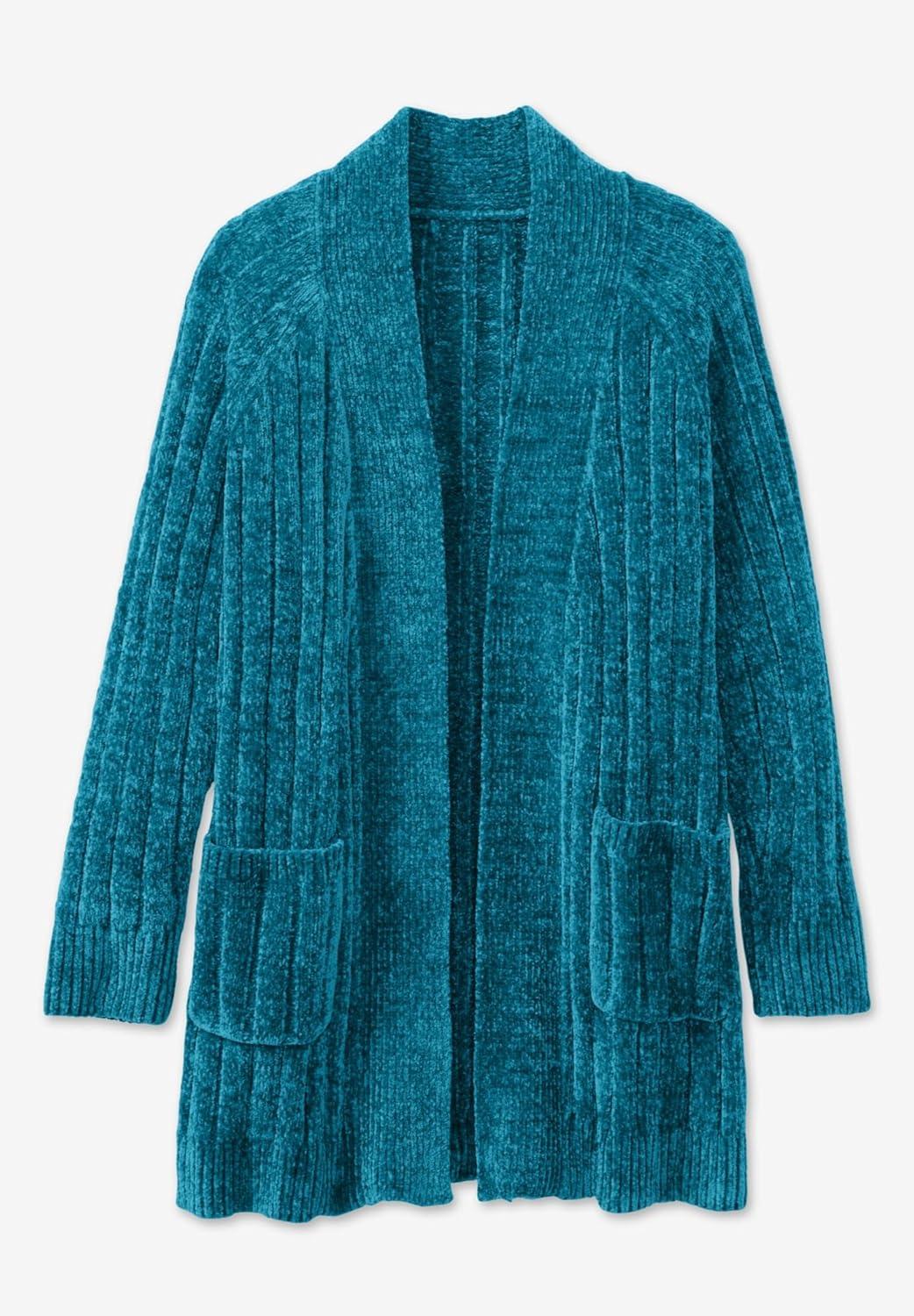 Woman Within Plus Size Open Front Chenille Cardigan(Jewel Space Dye)