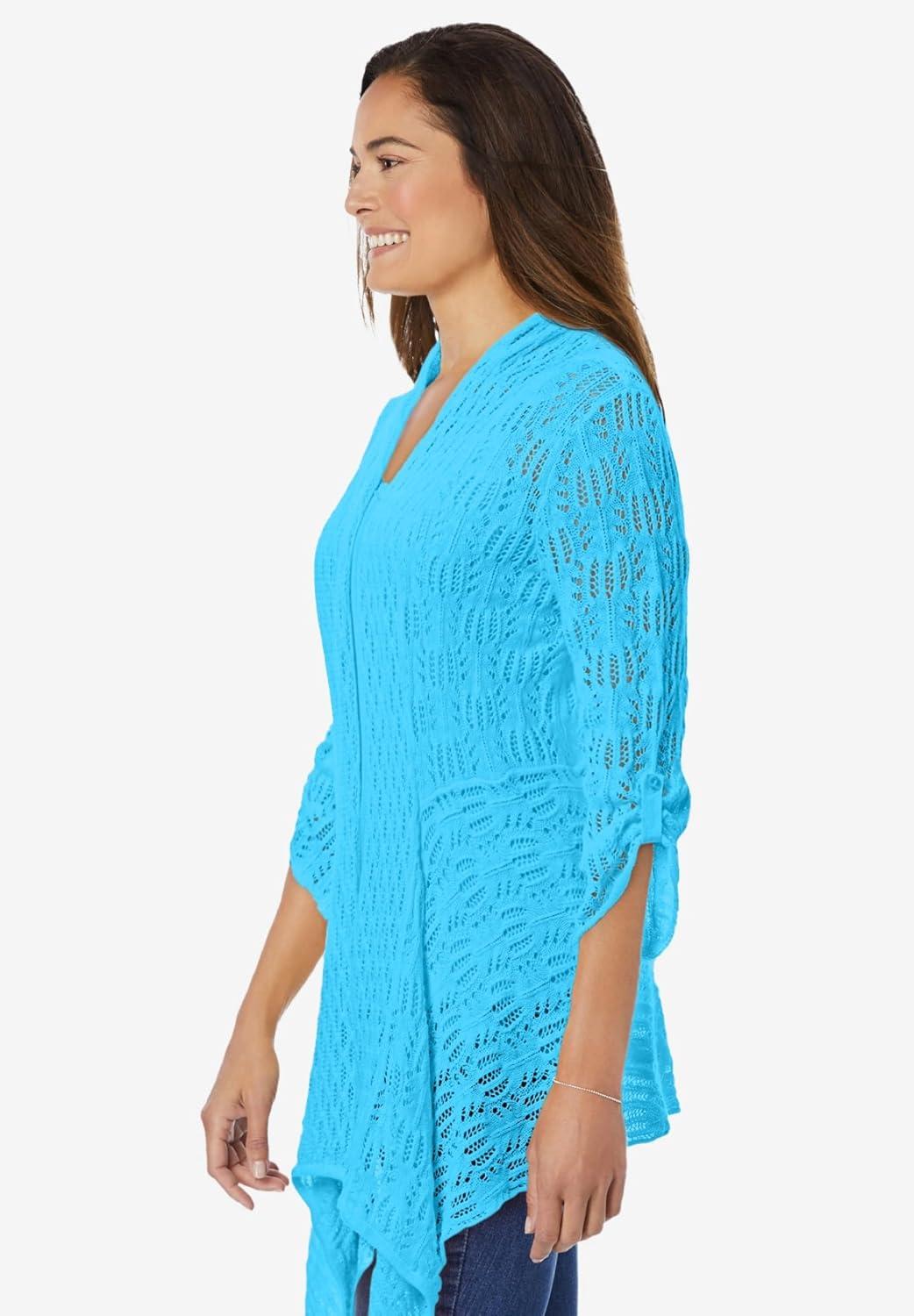 Woman Within Plus Size Open Front Pointelle Cardigan Sweater(Paradise Blue)